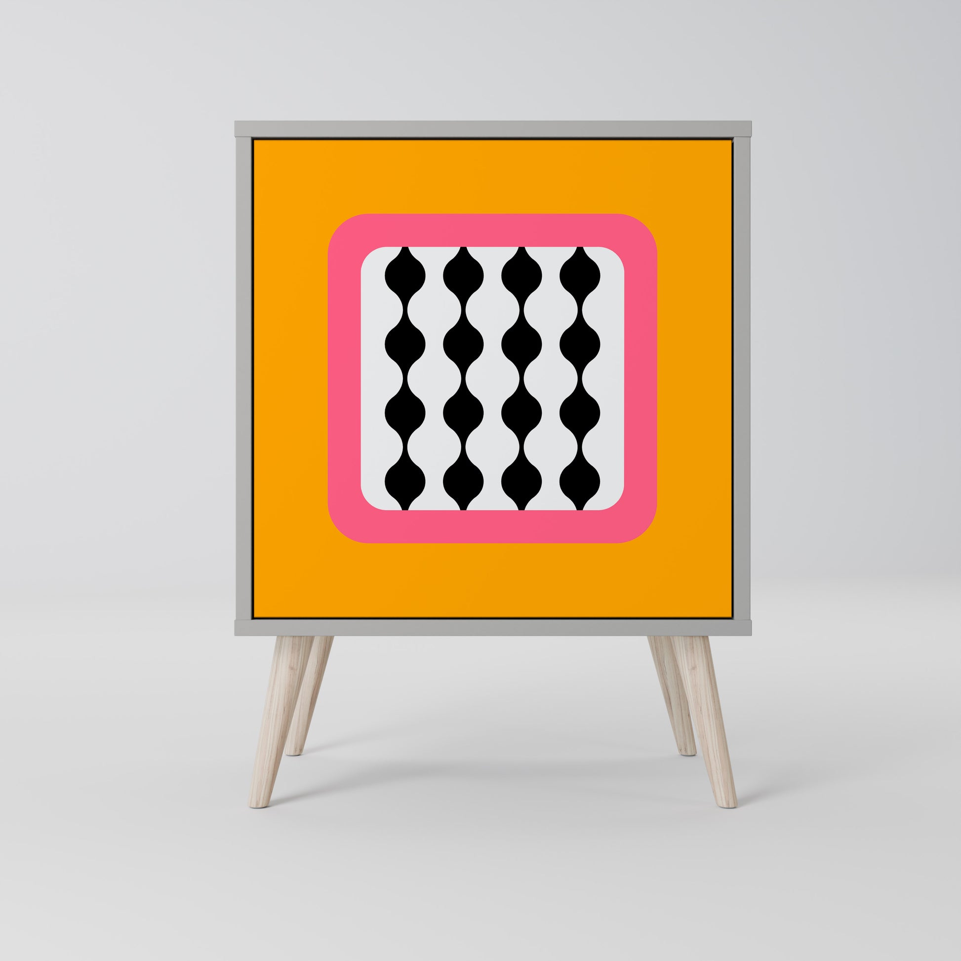 Questo mobile compatto ma straordinariamente elegante colpisce per il suo design minimalista, che si adatta perfettamente sia agli interni moderni che a quelli classici. Il tenue colore grigio della struttura conferisce al mobile un carattere discreto ma distintivo, mentre i frontali con una stampa esclusiva aggiungono un tocco artistico.