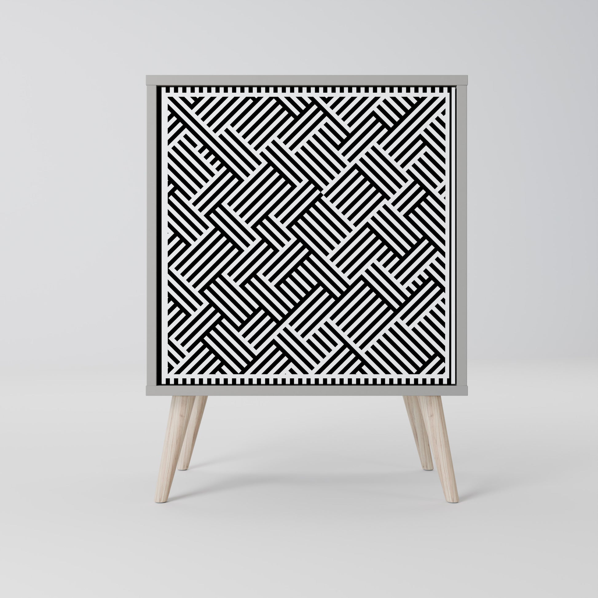 Questo mobile compatto ma straordinariamente elegante colpisce per il suo design minimalista, che si adatta perfettamente sia agli interni moderni che a quelli classici. Il tenue colore grigio della struttura conferisce al mobile un carattere discreto ma distintivo, mentre i frontali con una stampa esclusiva aggiungono un tocco artistico.