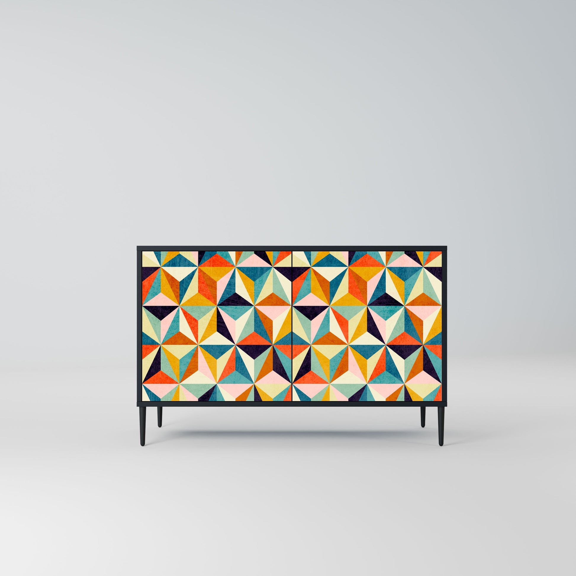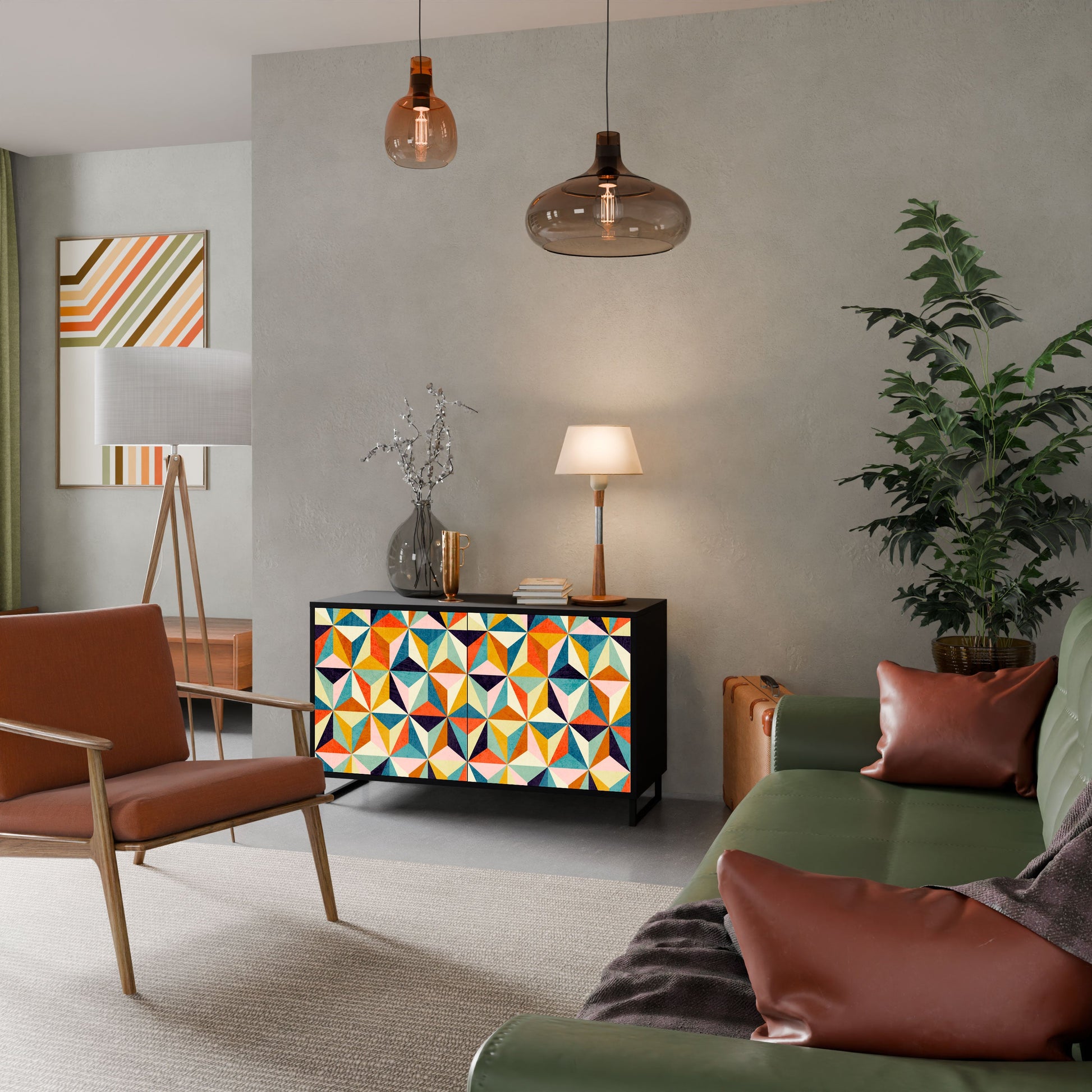 Eleganza e funzionalità in un unico mobile: la nostra credenza a 2 ante con corpo nero è la soluzione perfetta per gli amanti degli interni eleganti e moderni. Il corpo nero enfatizza il carattere audace del mobile, mentre i frontali con una stampa unica aggiungono un tocco artistico. Si adatta perfettamente al soggiorno, alla camera da letto o all'ufficio, completando sia gli arrangiamenti moderni che quelli industriali.