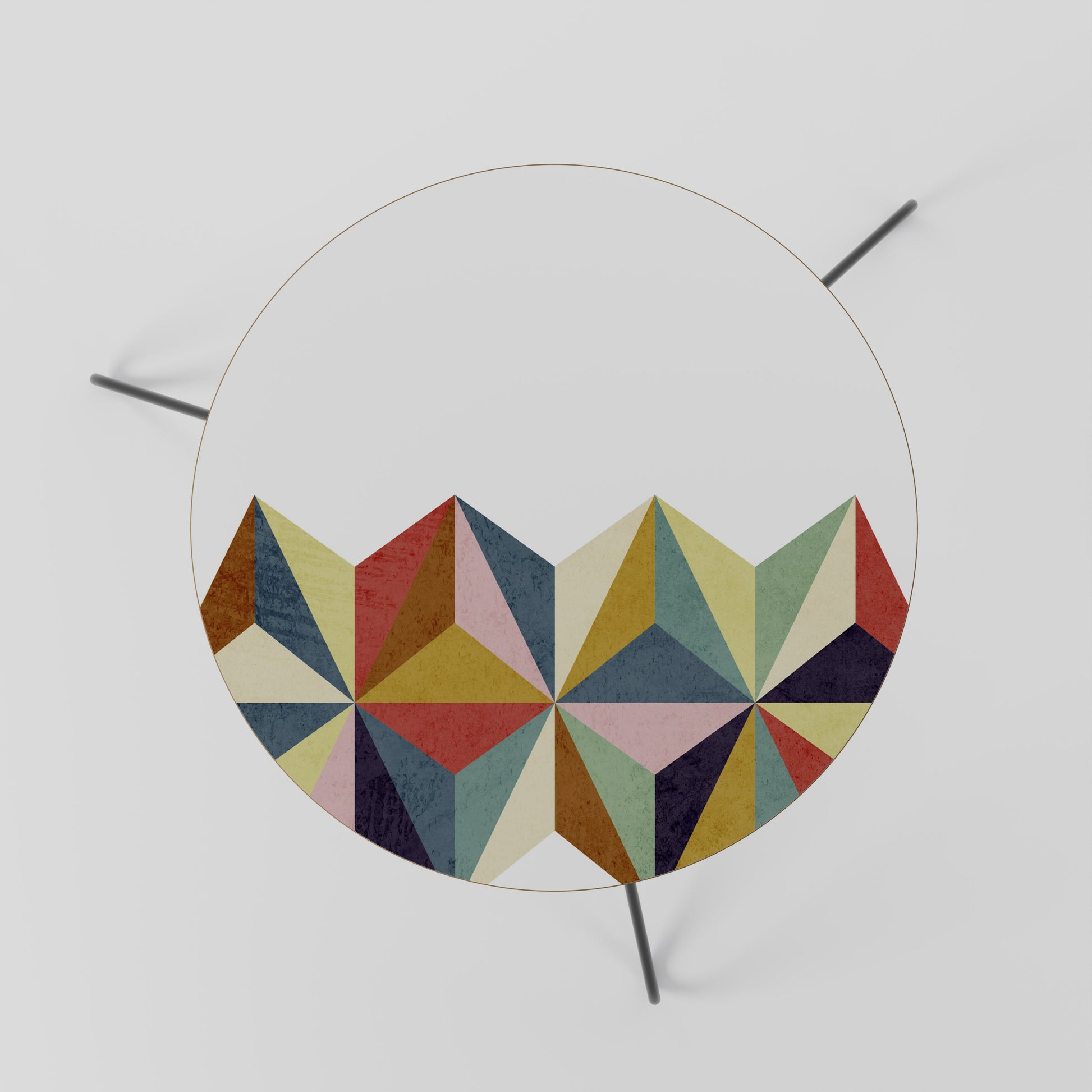 Il piano del tavolo presenta un motivo stampato di alta qualità, che aggiunge un tocco artistico distintivo al tuo spazio. Realizzato in resistente truciolato rivestito in laminato, garantisce un utilizzo duraturo e resistenza all'usura quotidiana.