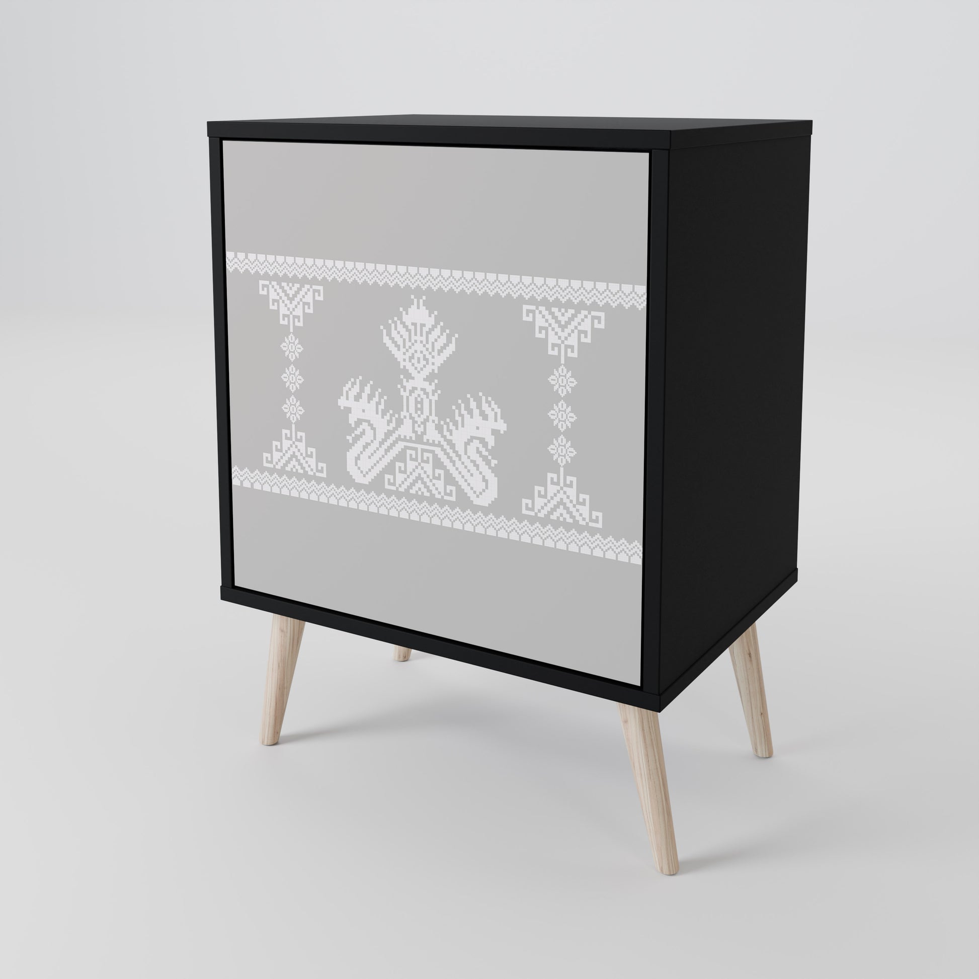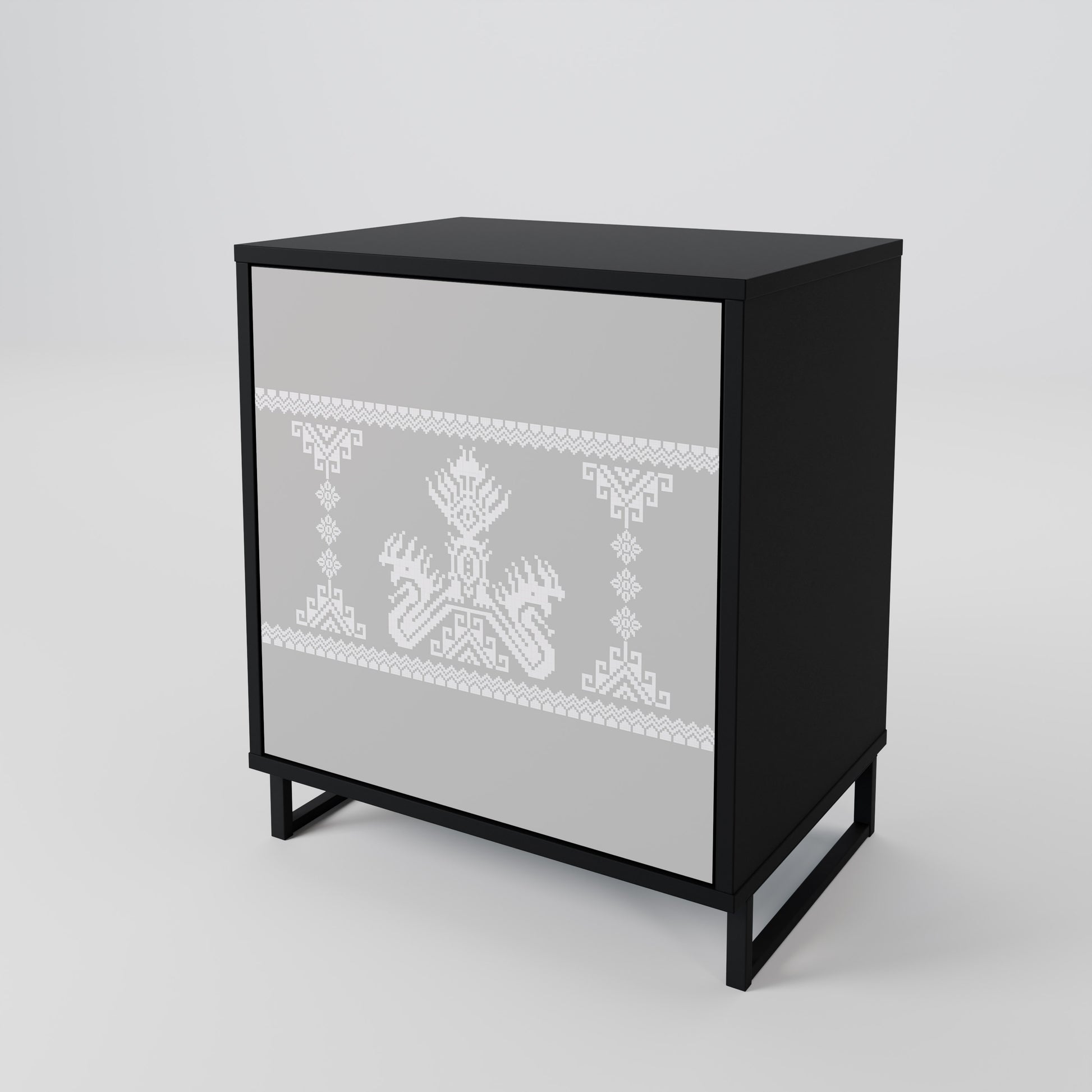 Questo mobile compatto ma straordinariamente elegante colpisce per il suo design minimalista, che si adatta perfettamente sia agli interni moderni che a quelli classici. Il corpo nero enfatizza il carattere audace del mobile, mentre i frontali con una stampa esclusiva aggiungono un tocco artistico.