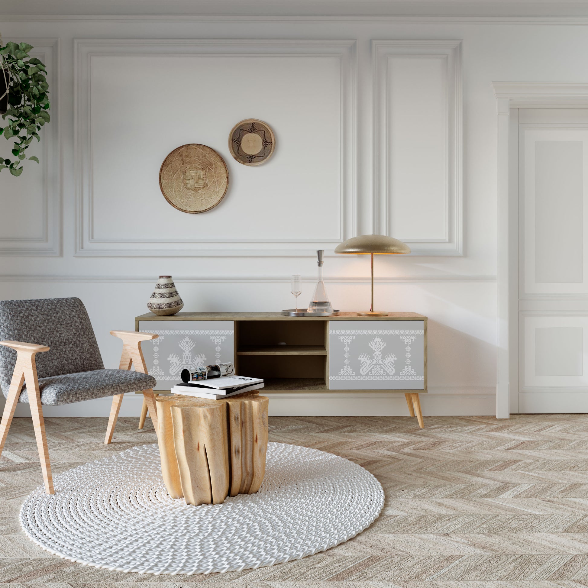 Ti invitiamo a scoprire il nostro mobile porta TV a 2 ante che unisce semplicità e stile eccezionale. Realizzato con materiali di altissima qualità, questo elegante pezzo nei toni della quercia, con ante in legno con finitura stampata, è l'aggiunta perfetta a qualsiasi soggiorno moderno.