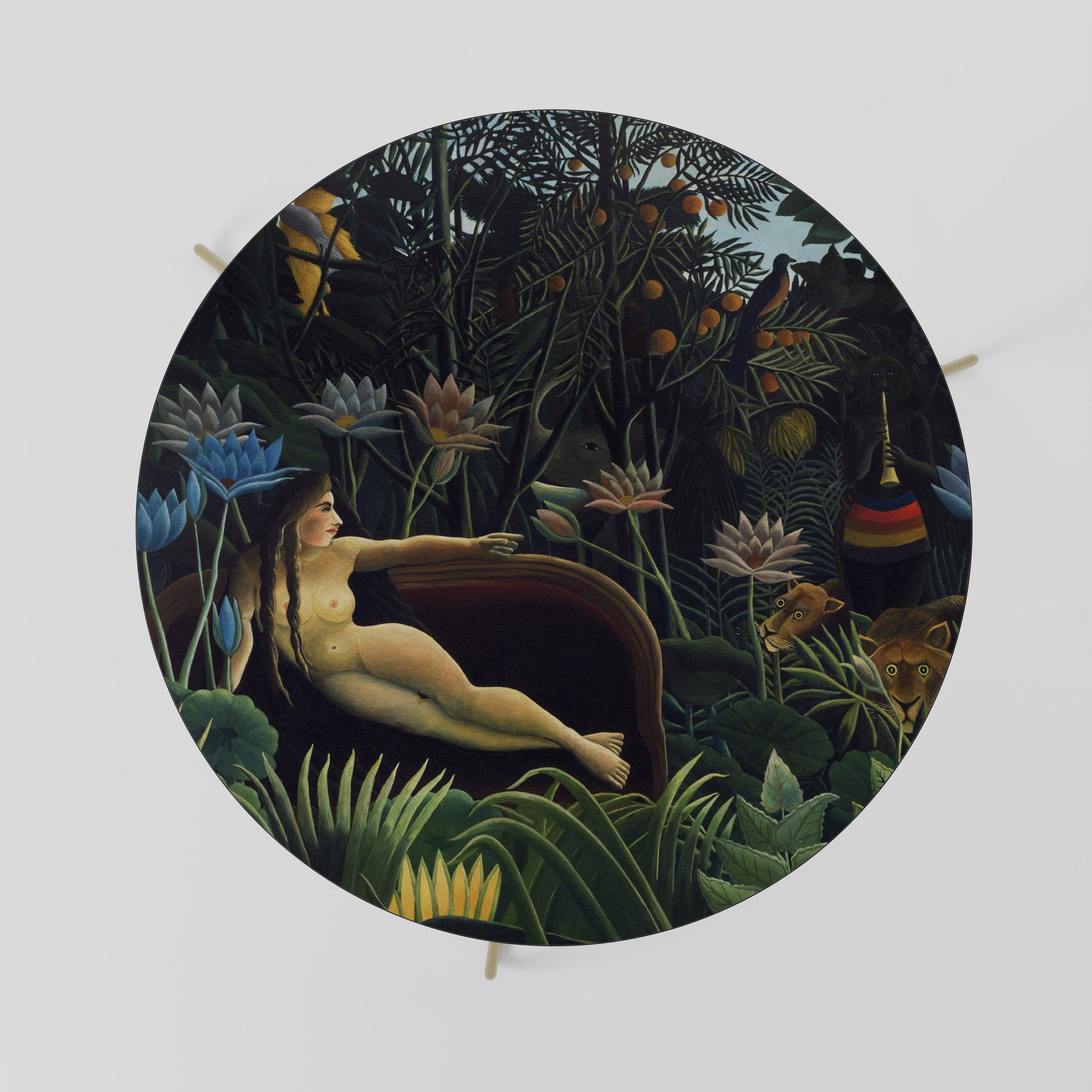 Il piano del tavolo presenta un motivo stampato di alta qualità, che aggiunge un tocco artistico distintivo al tuo spazio. Realizzato in resistente truciolato rivestito in laminato, garantisce un utilizzo duraturo e resistenza all'usura quotidiana.