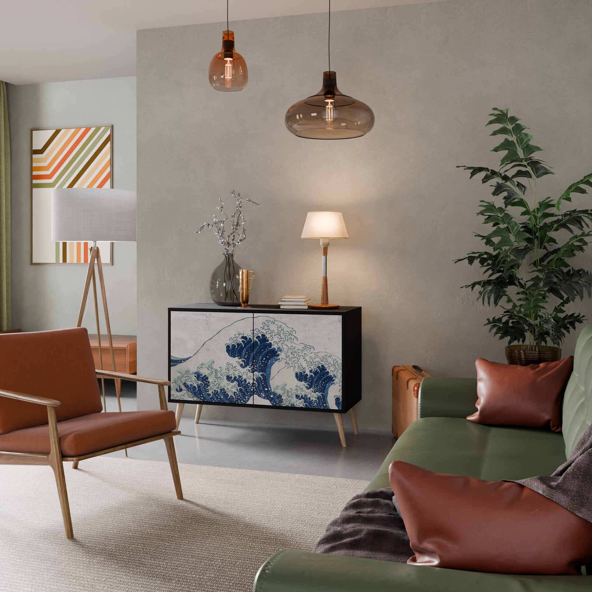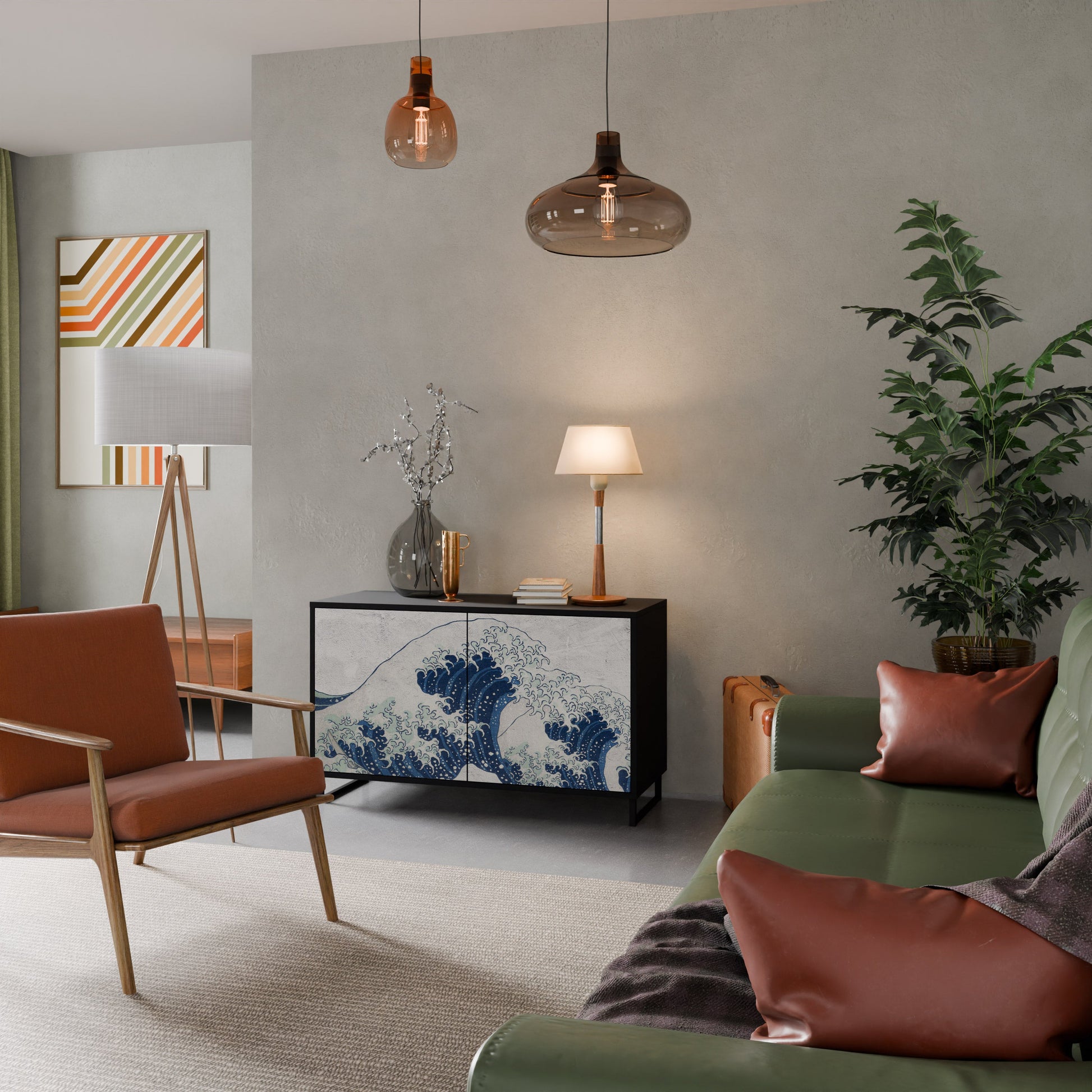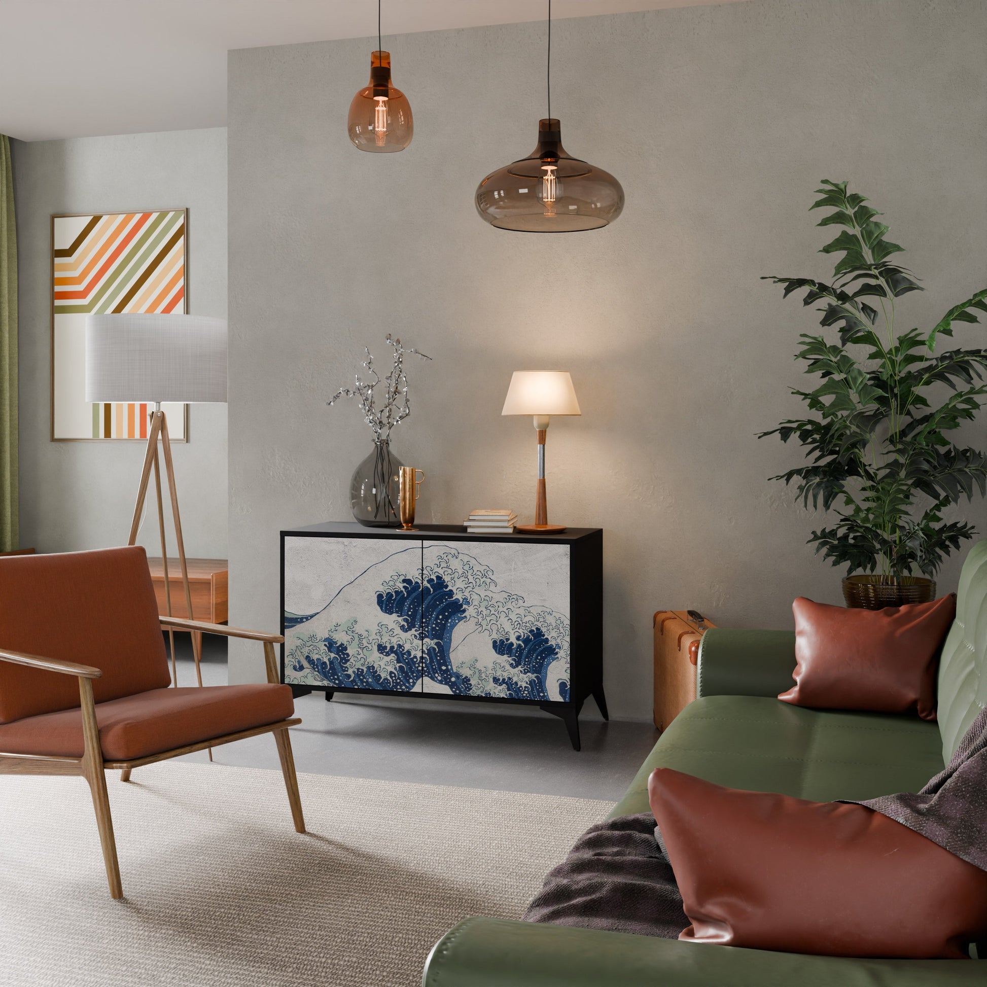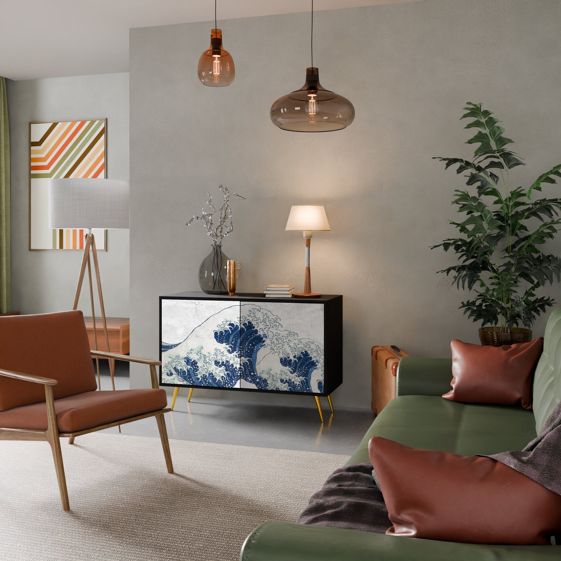 Credenza a 2 ante THE GREAT WAVE AT KANAGAWA in finitura nera