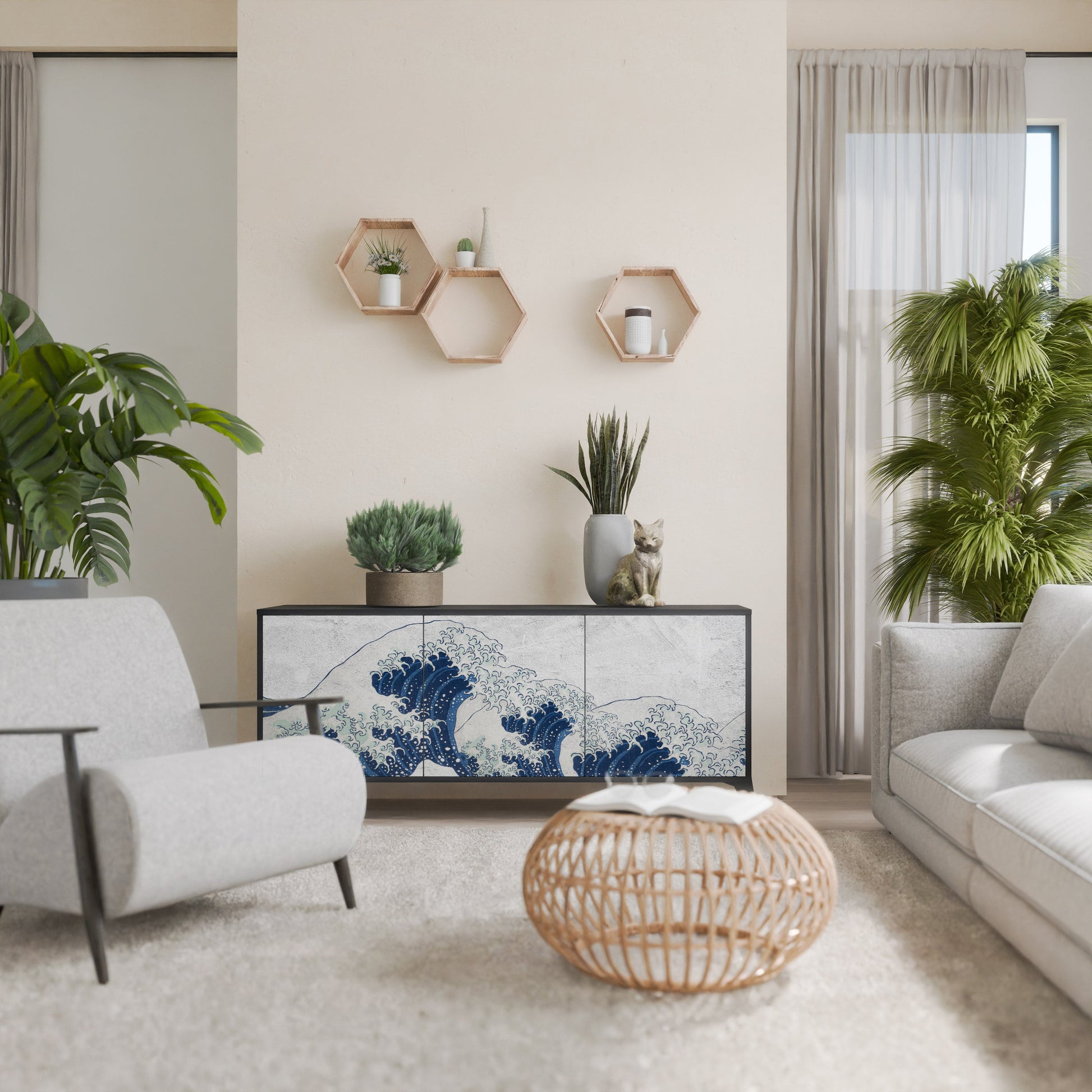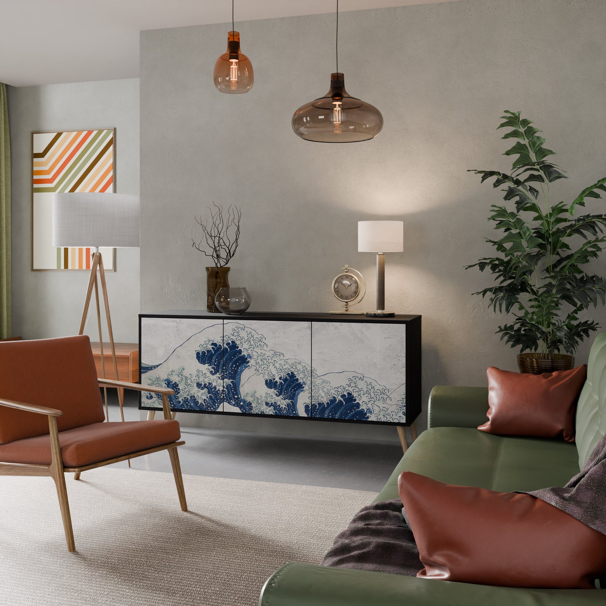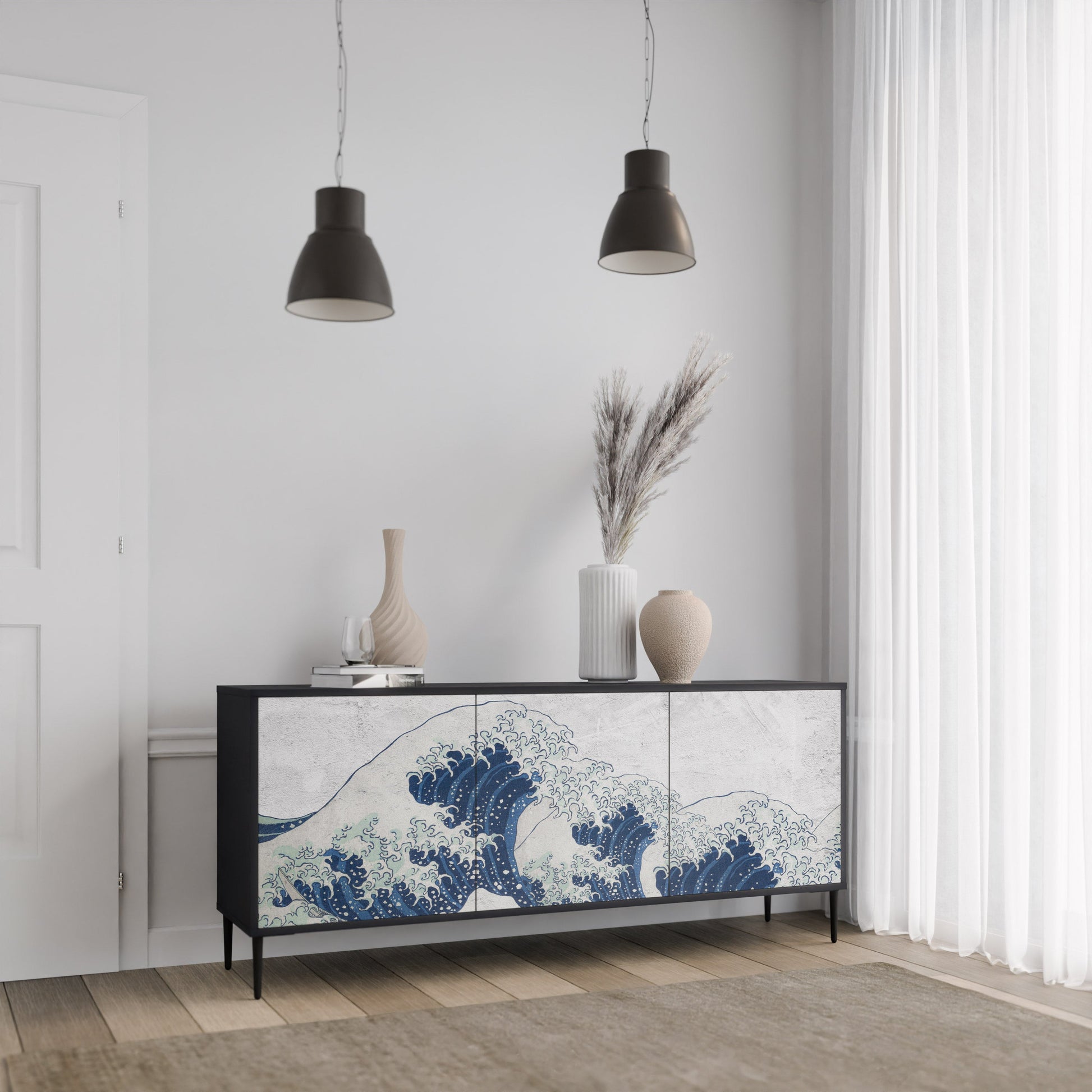Credenza a 3 ante THE GREAT WAVE AT KANAGAWA in finitura nera