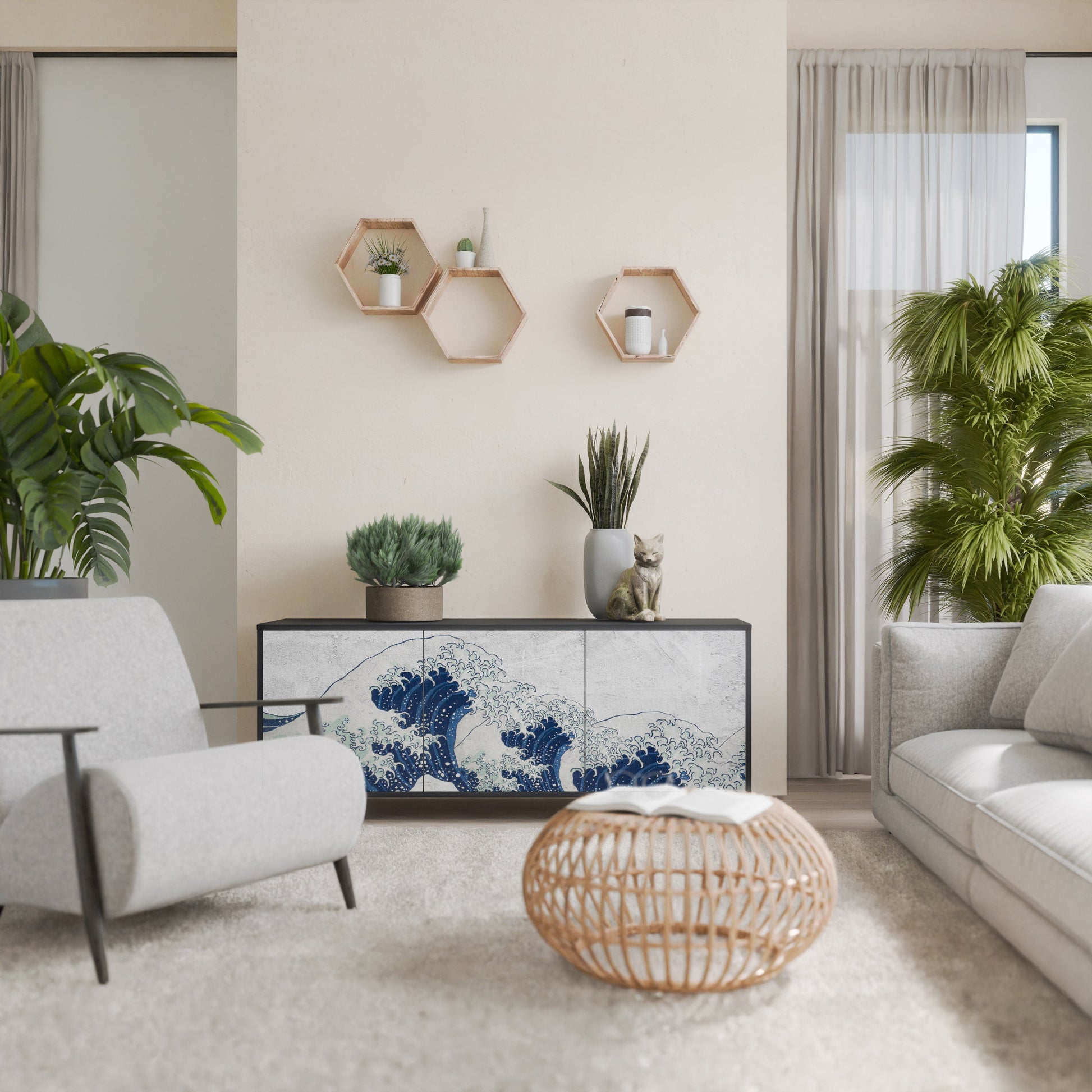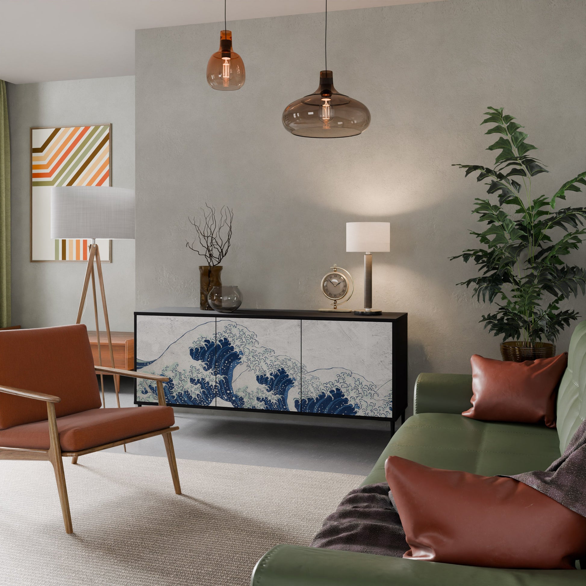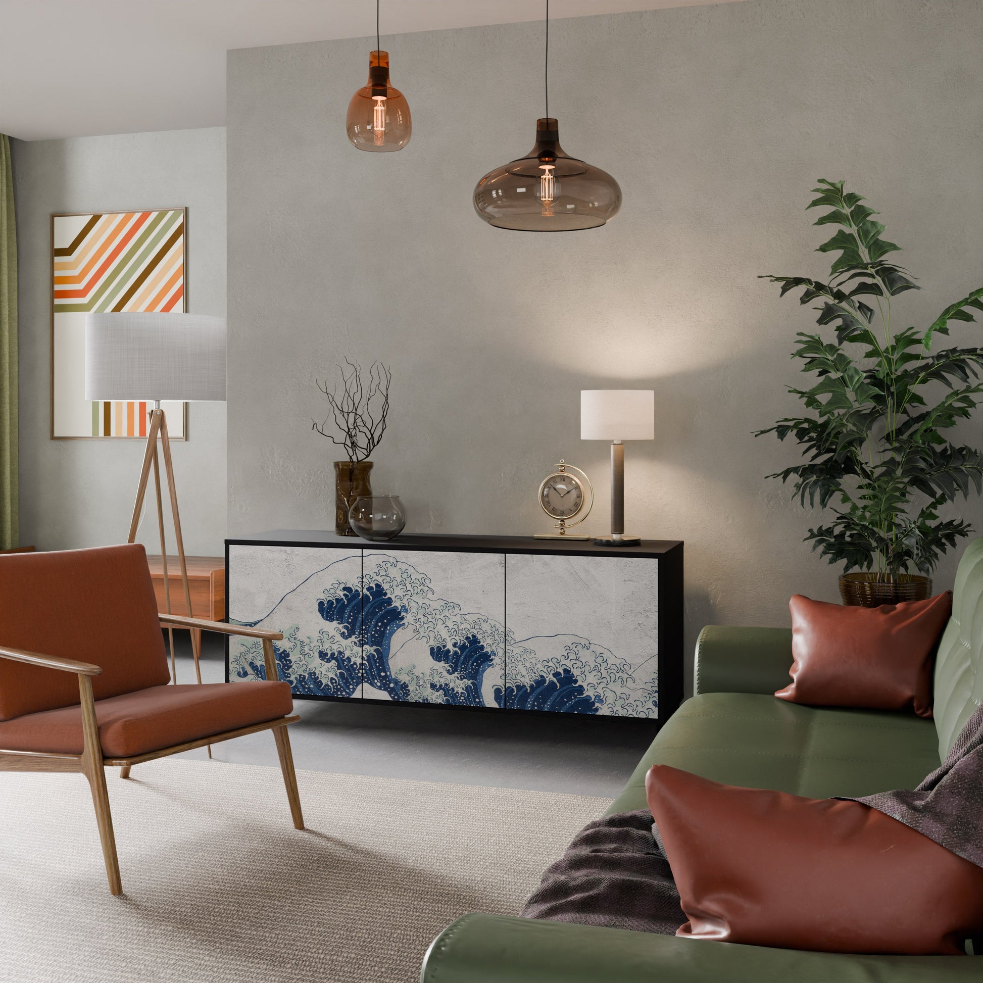 Credenza a 3 ante THE GREAT WAVE AT KANAGAWA in finitura nera