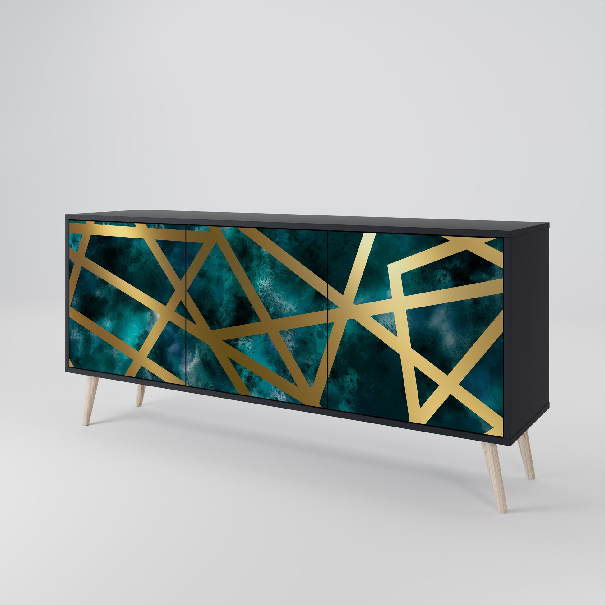 Credenza a 3 ante THE LABYRINTH OF GOLD con finitura nera