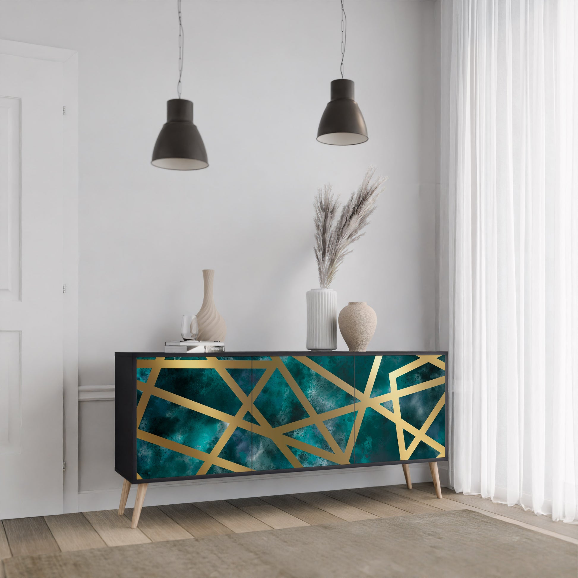 Eleganza e funzionalità in un unico mobile: la nostra credenza a 3 ante con corpo nero è la soluzione perfetta per gli amanti degli interni eleganti e moderni. Il corpo nero enfatizza il carattere audace del mobile, mentre i frontali con una stampa unica aggiungono un tocco artistico. Si adatta perfettamente al soggiorno, alla camera da letto o all'ufficio, completando sia gli arrangiamenti moderni che quelli industriali.
