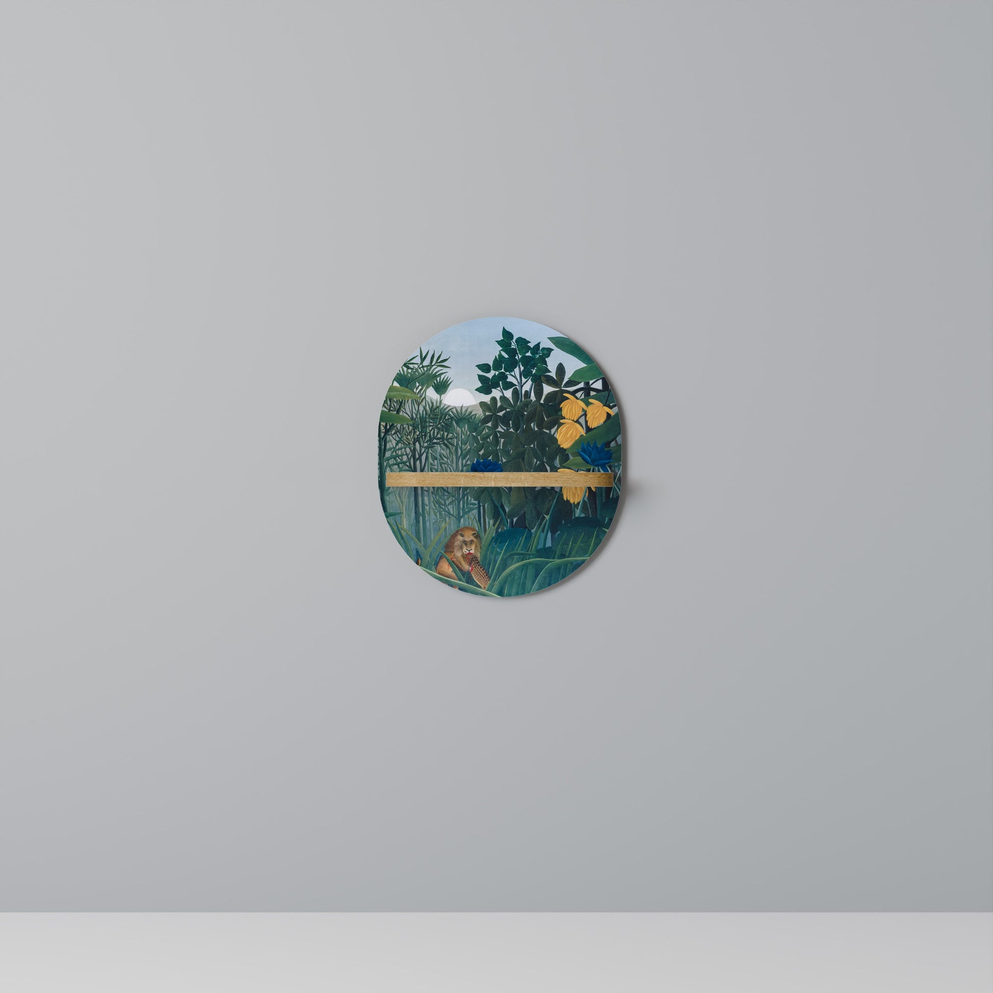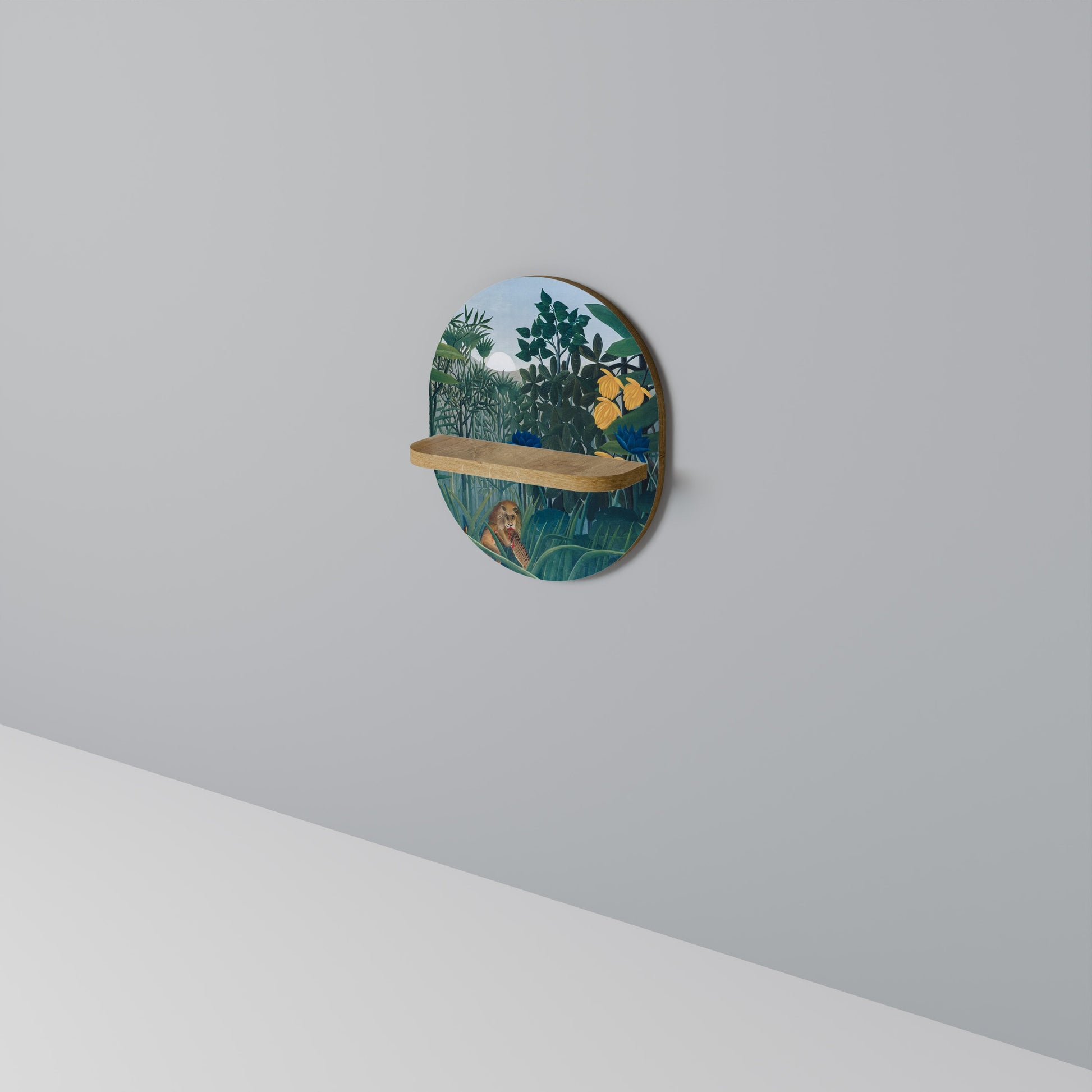La mensola si distingue per la sua forma ovale unica che si allinea perfettamente alle tendenze moderne dell'interior design, pur mantenendo un fascino universale che si adatta a qualsiasi stanza. L'arredamento in rovere naturale le conferisce un aspetto caldo e organico, fondendosi perfettamente con composizioni sia classiche che moderne.