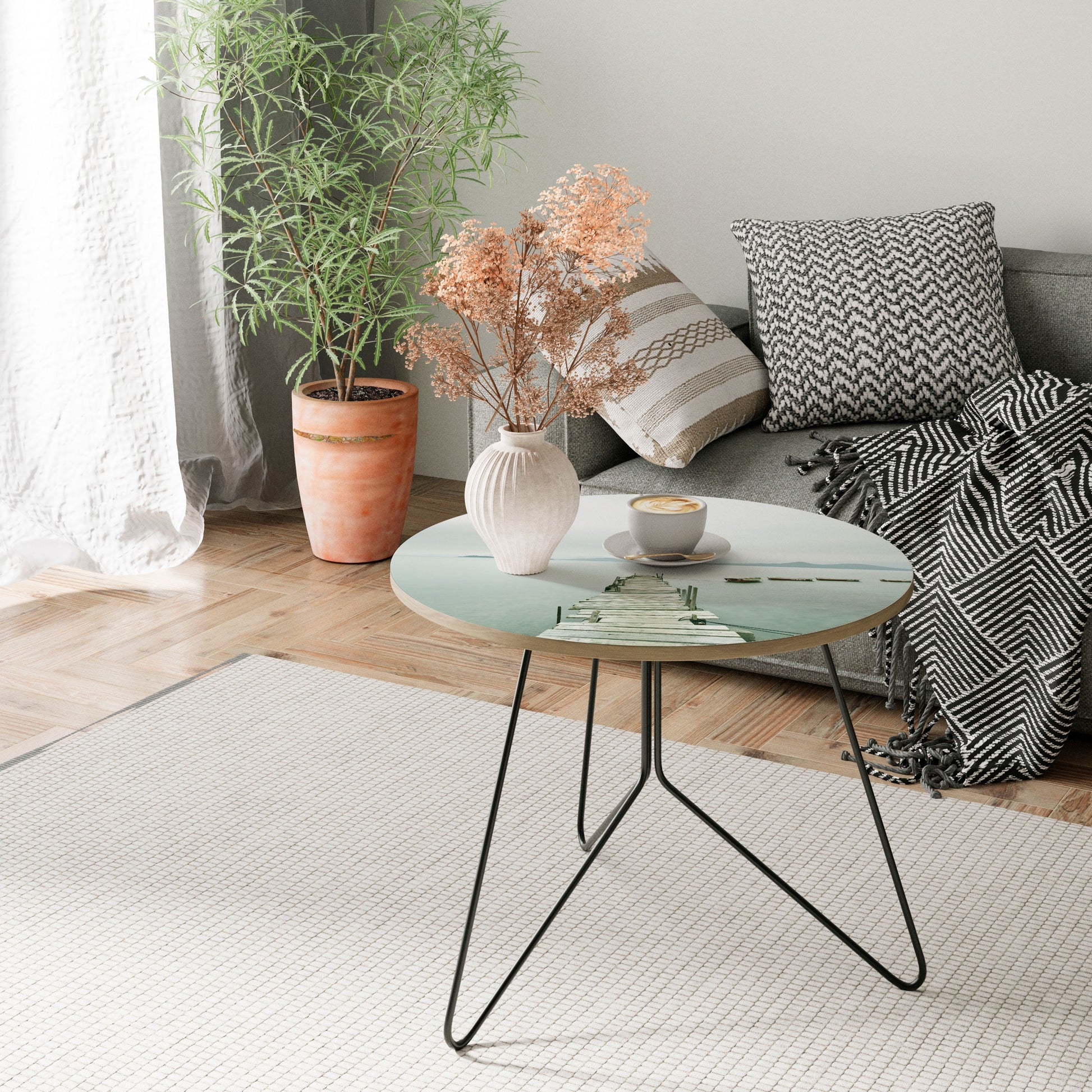 Il piano del tavolo presenta un motivo stampato di alta qualità, che aggiunge un tocco artistico distintivo al tuo spazio. Realizzato in resistente truciolato rivestito in laminato, garantisce un utilizzo duraturo e resistenza all'usura quotidiana.
