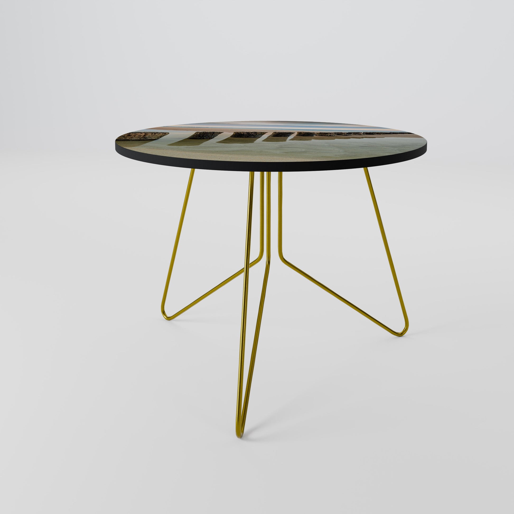 - Gambe con pinna dorata / Bordo del tavolo con finitura nera