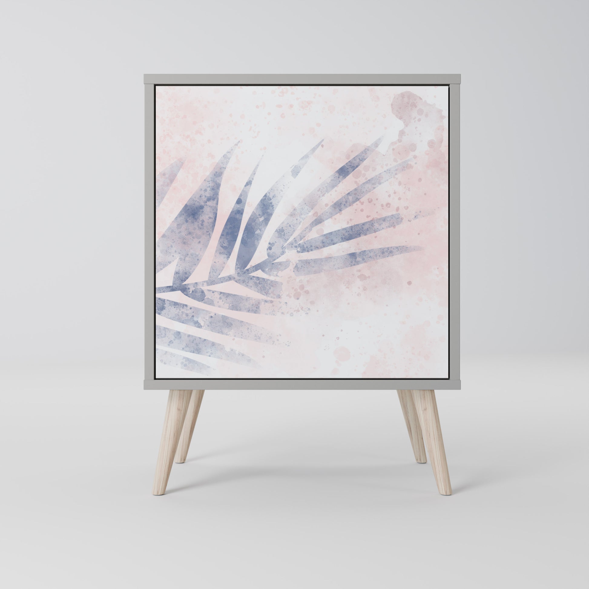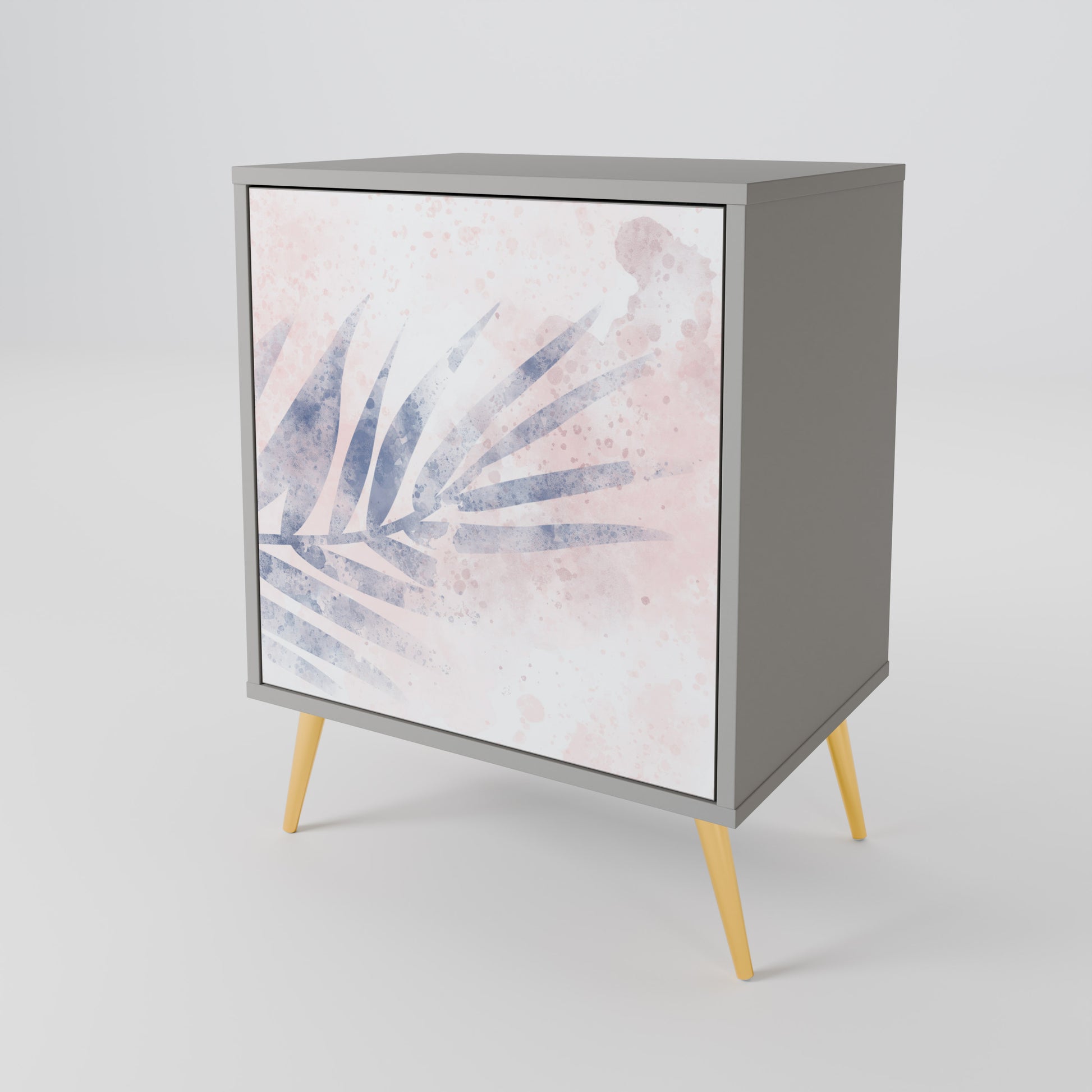 Questo mobile compatto ma straordinariamente elegante colpisce per il suo design minimalista, che si adatta perfettamente sia agli interni moderni che a quelli classici. Il tenue colore grigio della struttura conferisce al mobile un carattere discreto ma distintivo, mentre i frontali con una stampa esclusiva aggiungono un tocco artistico.