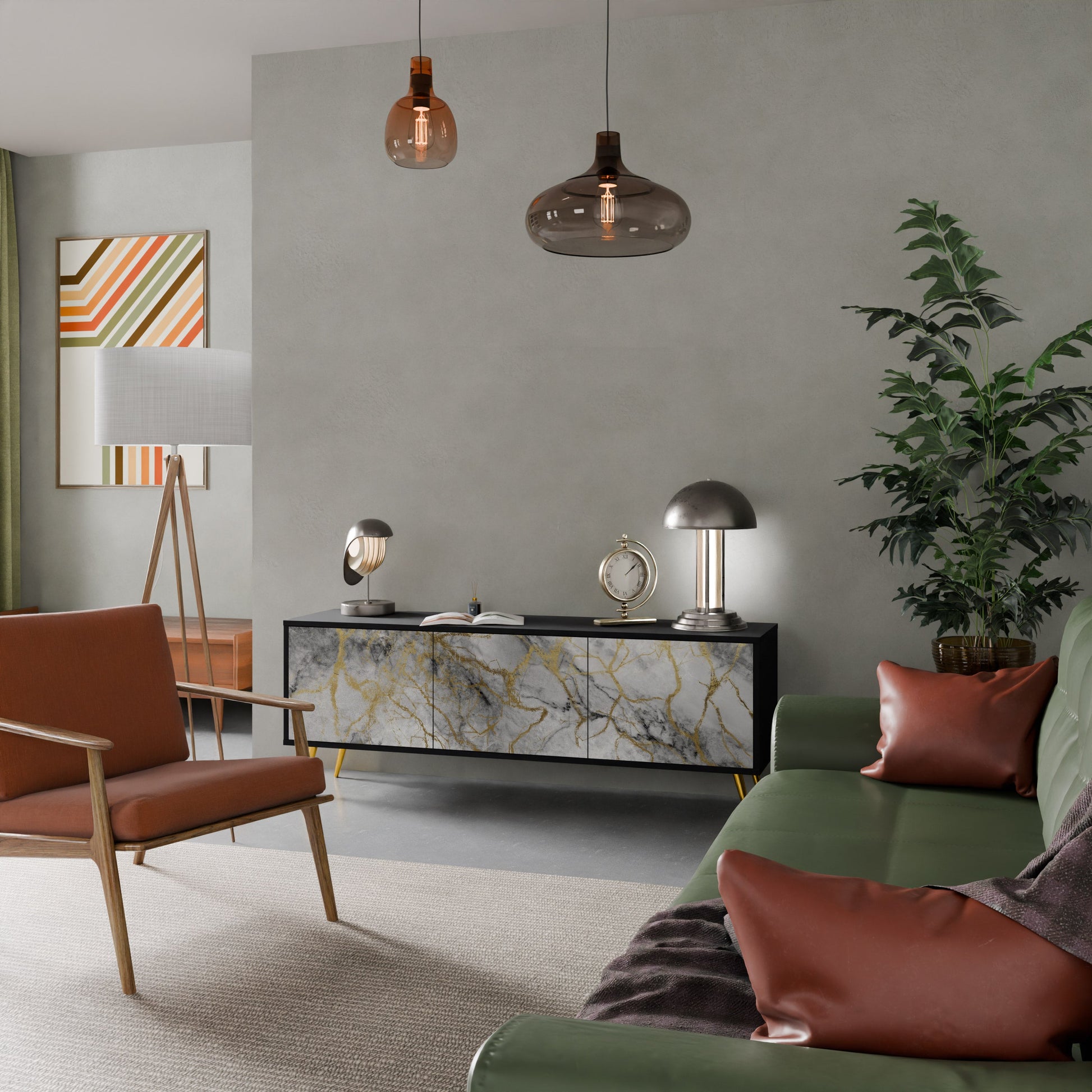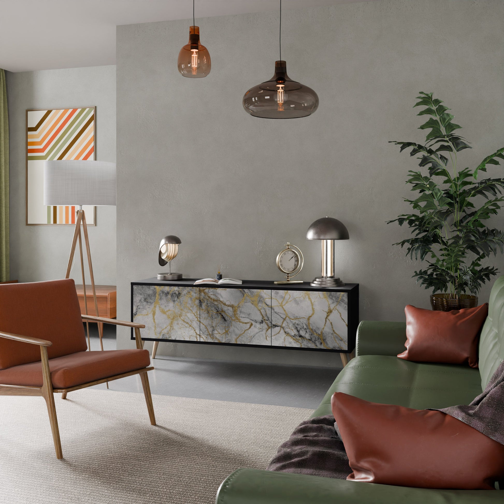 Il corpo nero del supporto crea un accento audace e moderno che si abbina magnificamente ad allestimenti industriali e minimalisti. I frontali con una stampa di design aggiungono carattere e unicità, rendendo questo pezzo non solo pratico ma anche un elemento decorativo di spicco.