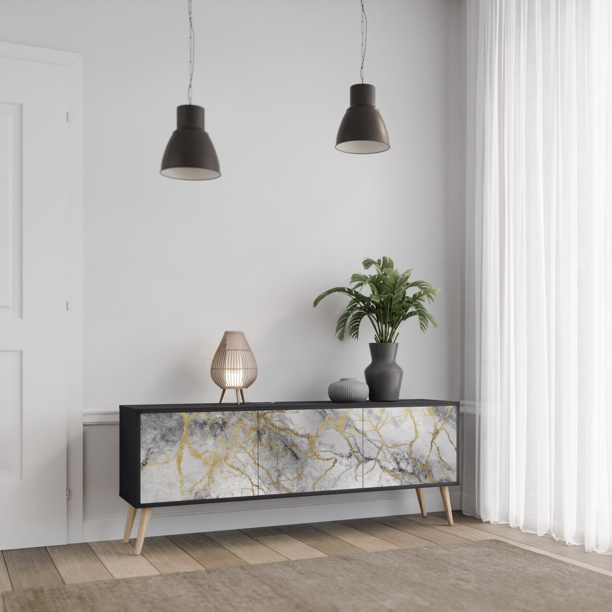 Scopri il perfetto mix di stile e funzionalità! Il nostro mobile porta TV a 3 ante con corpo nero porta eleganza moderna e il massimo spazio di archiviazione al tuo interno. È una scelta ideale per il soggiorno, offrendo un posto per la tua TV e spazio per dispositivi elettronici, accessori e decorazioni.