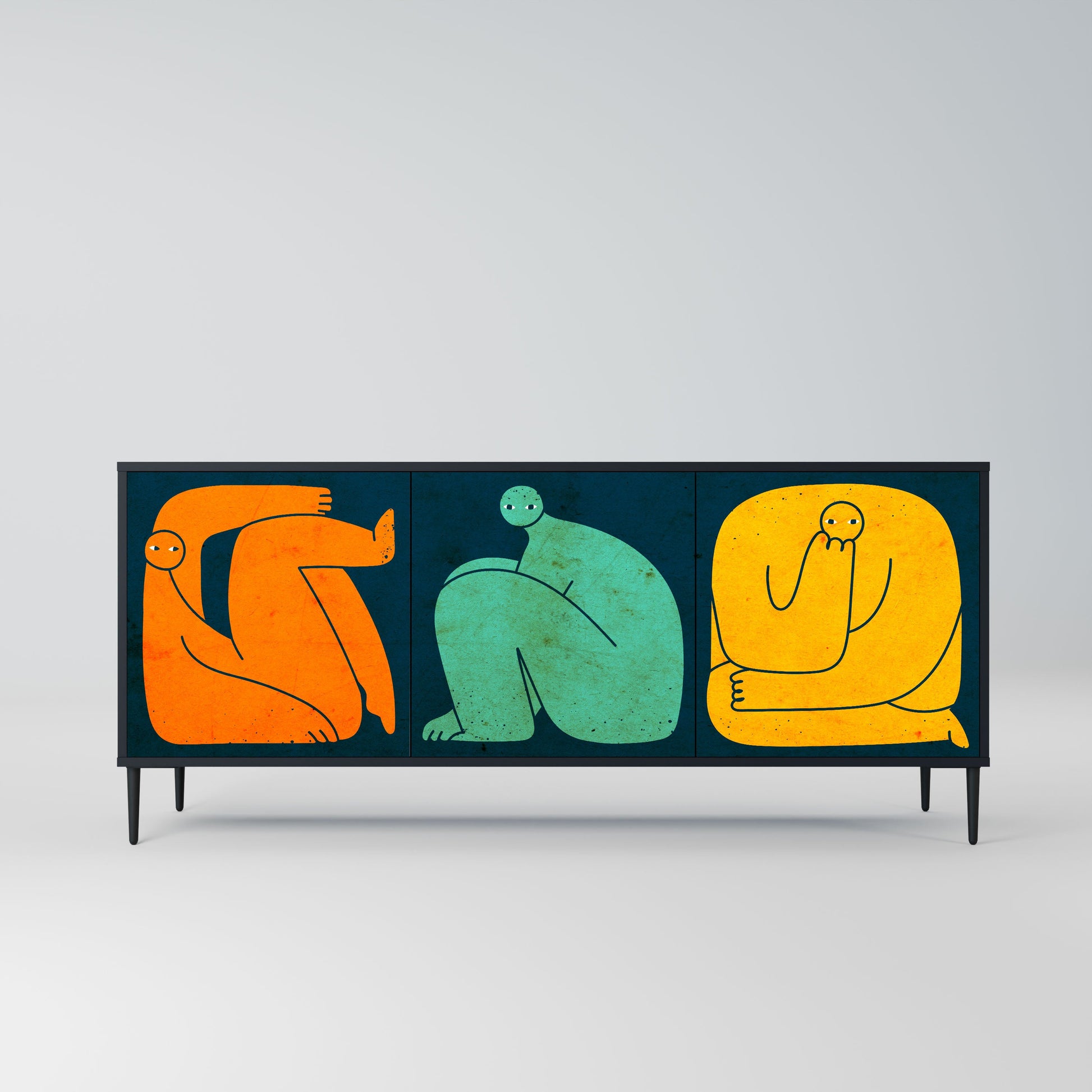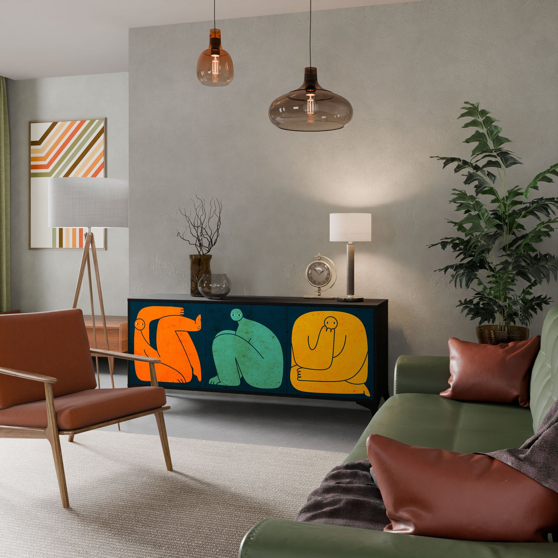 Eleganza e funzionalità in un unico mobile: la nostra credenza a 3 ante con corpo nero è la soluzione perfetta per gli amanti degli interni eleganti e moderni. Il corpo nero enfatizza il carattere audace del mobile, mentre i frontali con una stampa unica aggiungono un tocco artistico. Si adatta perfettamente al soggiorno, alla camera da letto o all'ufficio, completando sia gli arrangiamenti moderni che quelli industriali.