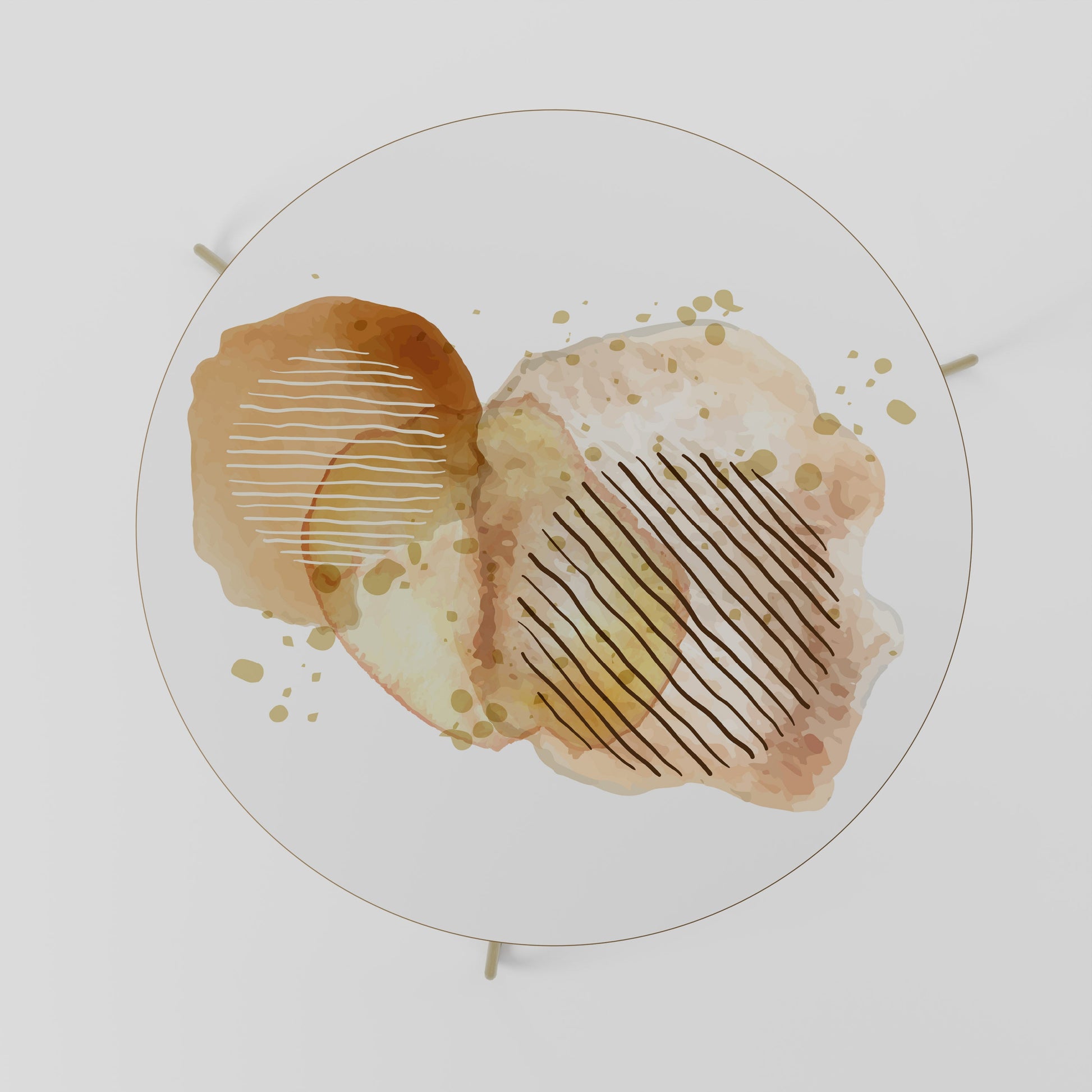 Il piano del tavolo presenta un motivo stampato di alta qualità, che aggiunge un tocco artistico distintivo al tuo spazio. Realizzato in resistente truciolato rivestito in laminato, garantisce un utilizzo duraturo e resistenza all'usura quotidiana.