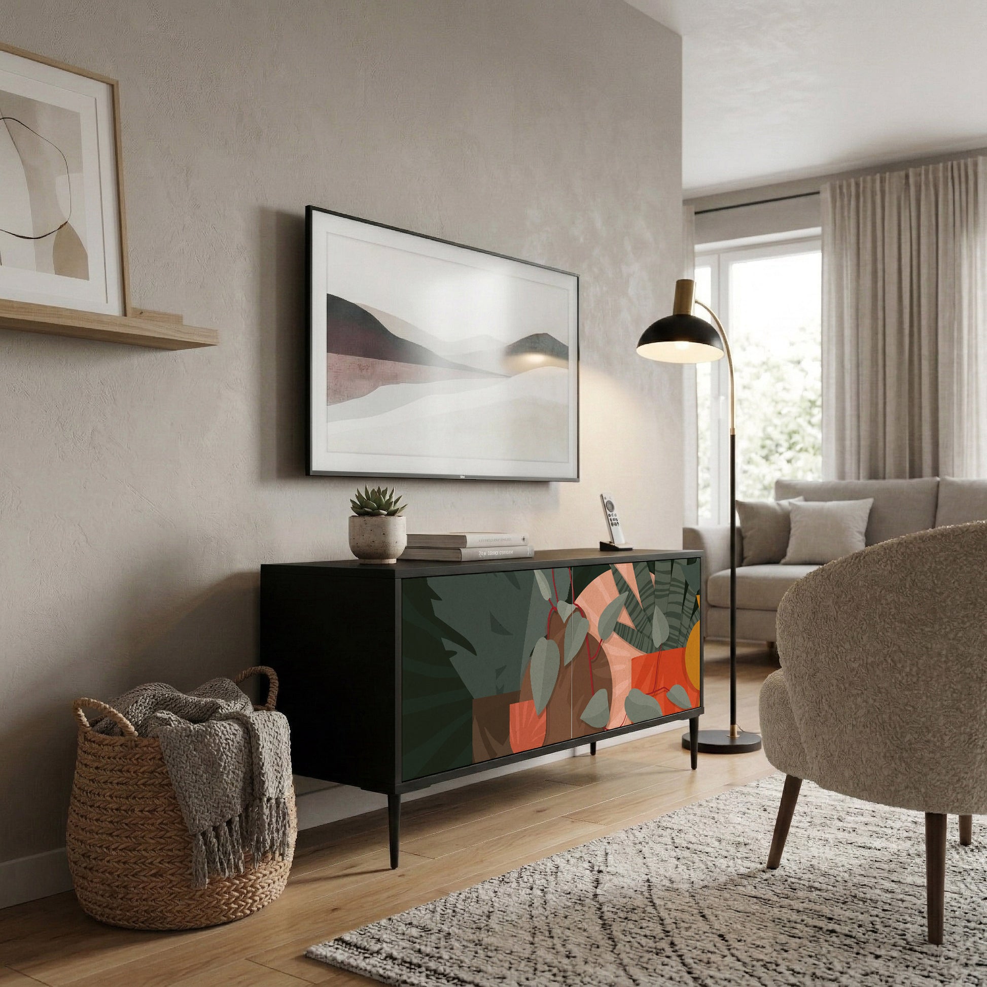 Come "fratello minore" del nostro modello a 3 ante, questo mobile è progettato specificamente per soggiorni più piccoli, monolocali o camere da letto dove lo spazio è prezioso. Nonostante l'ingombro più ridotto, mantiene un frontale completamente chiuso a due ante, offrendo un aspetto continuo e minimalista che nasconde alla vista i tuoi accessori multimediali.