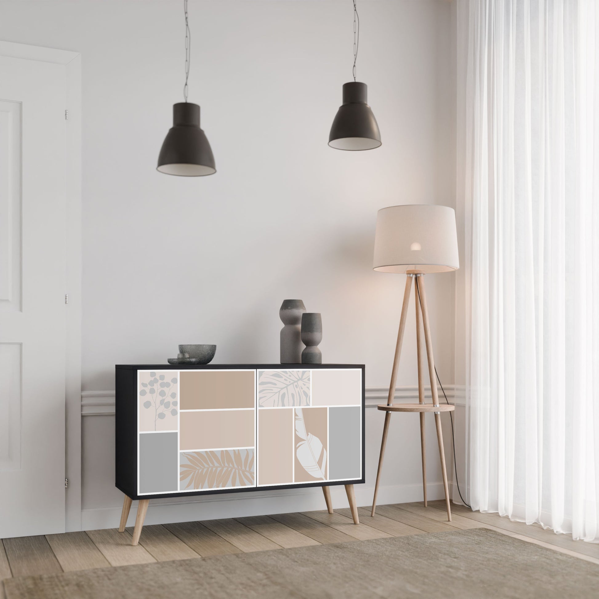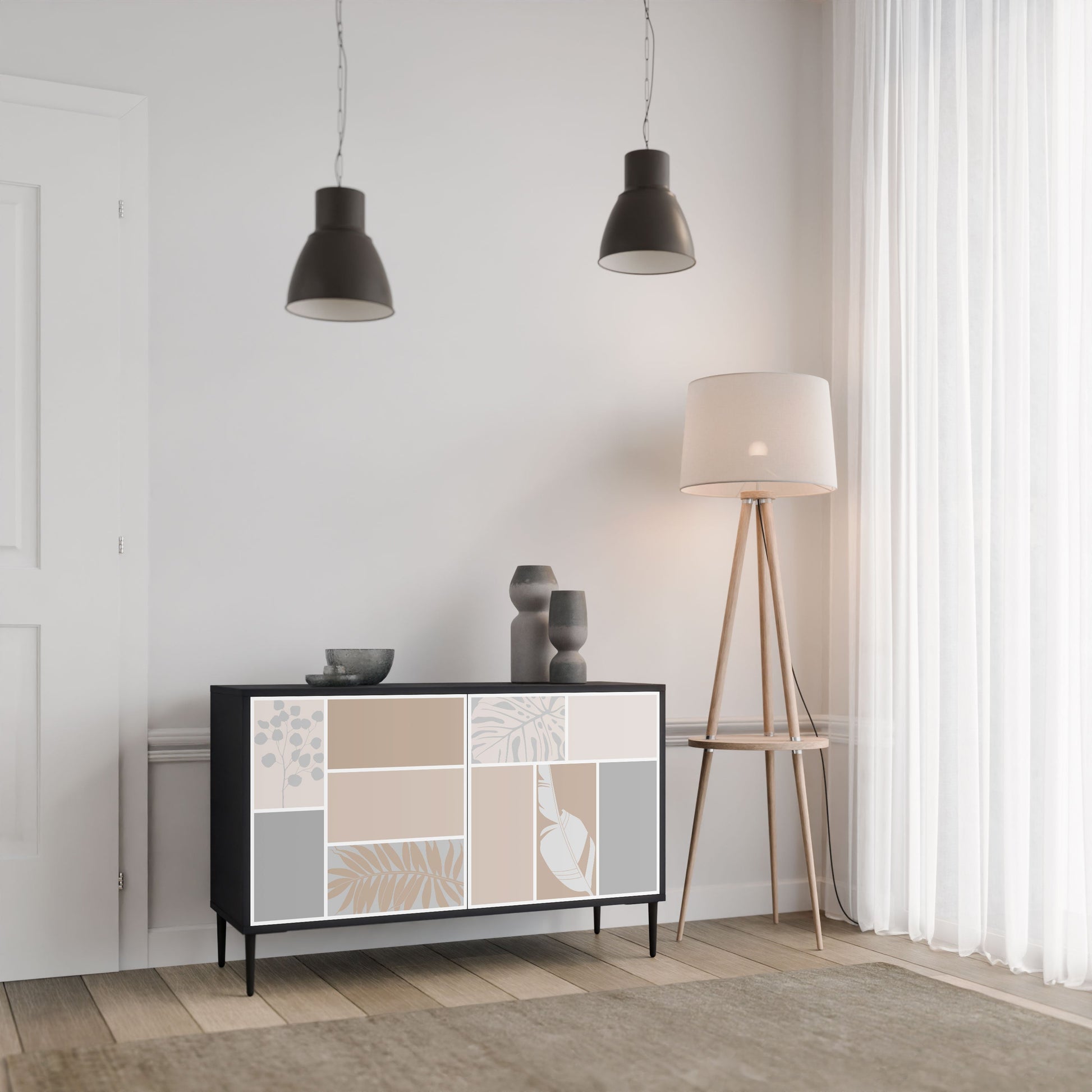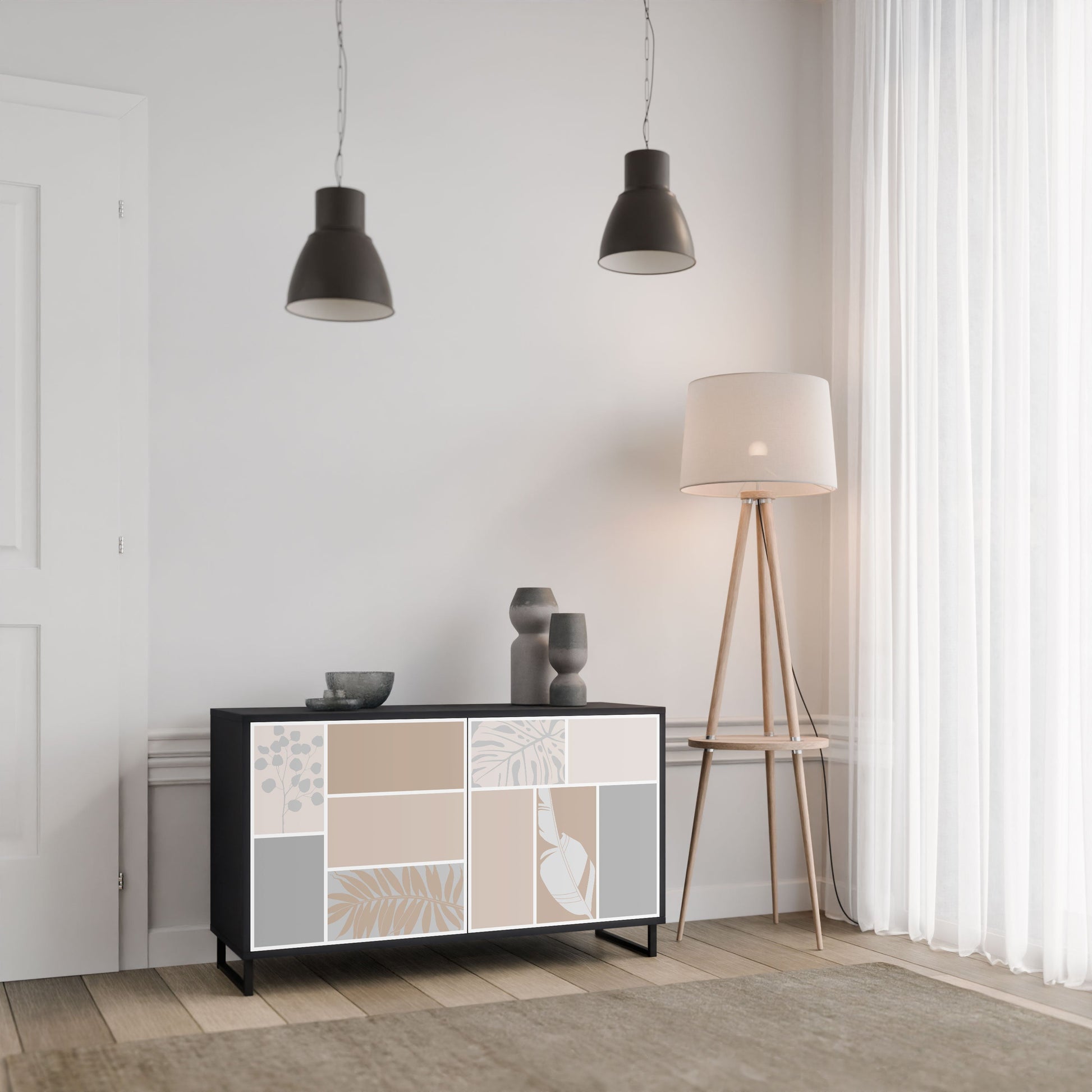 Eleganza e funzionalità in un unico mobile: la nostra credenza a 2 ante con corpo nero è la soluzione perfetta per gli amanti degli interni eleganti e moderni. Il corpo nero enfatizza il carattere audace del mobile, mentre i frontali con una stampa unica aggiungono un tocco artistico. Si adatta perfettamente al soggiorno, alla camera da letto o all'ufficio, completando sia gli arrangiamenti moderni che quelli industriali.