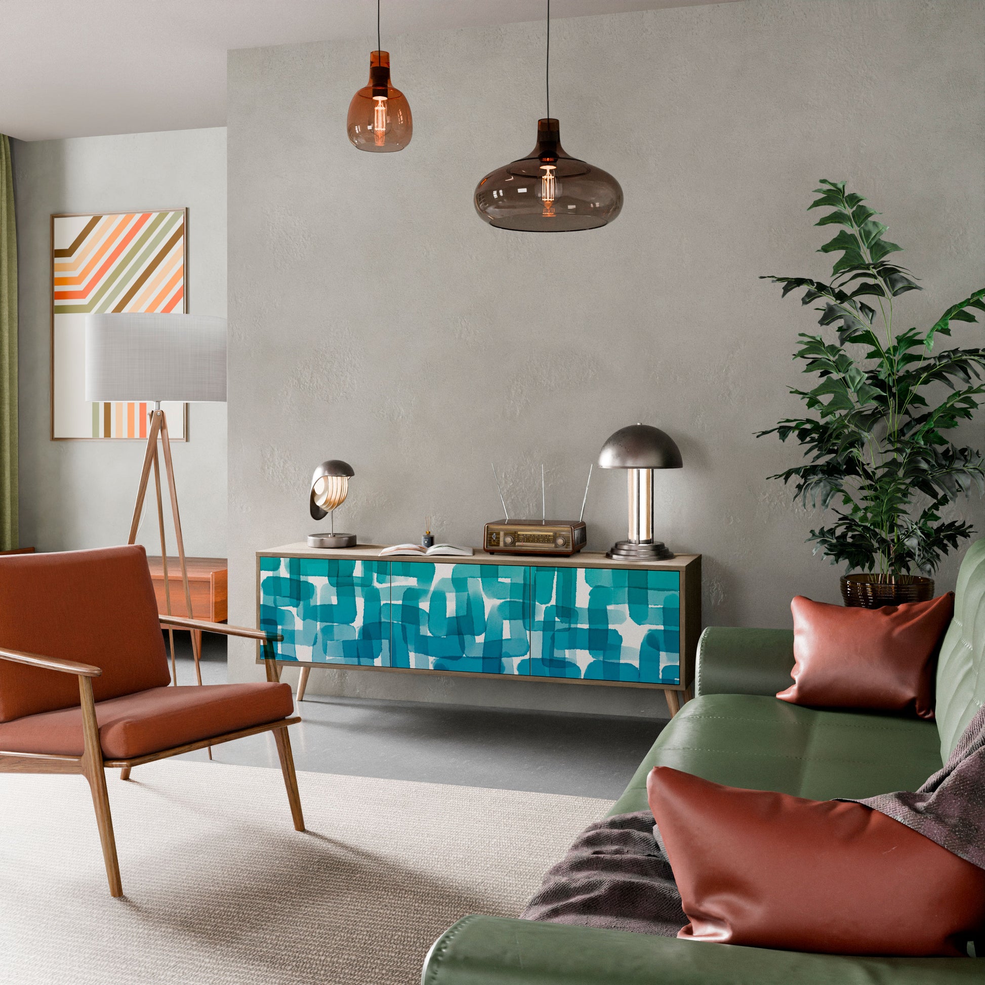 Mobile TV TURQUOISE RECTANGLES a 3 ante effetto rovere