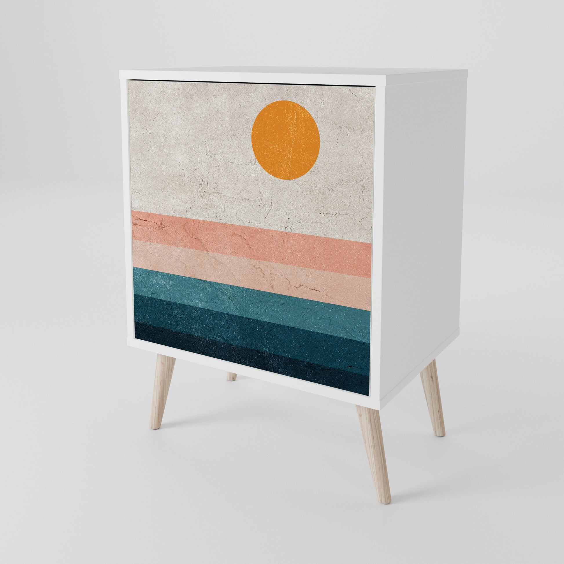 Questo mobile compatto ma straordinariamente elegante colpisce per il suo design minimalista, adattandosi perfettamente sia ad interni moderni che classici. Il colore bianco candido del corpo conferisce al mobile un carattere luminoso e rinfrescante, mentre i frontali con una stampa unica aggiungono un tocco artistico.