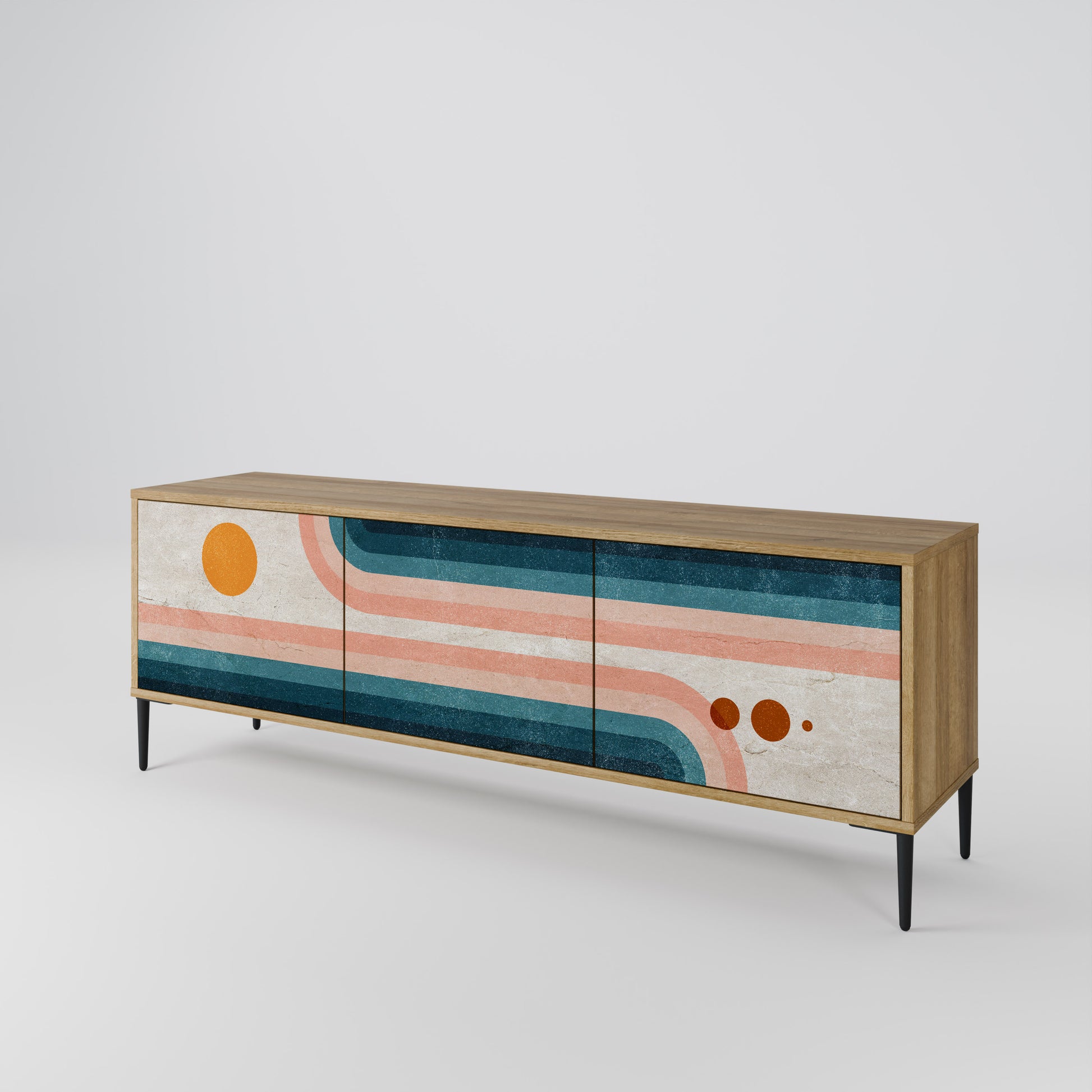 Scopri la soluzione perfetta per riporre e organizzare con il nostro mobile TV a 3 ante. Realizzato con materiali resistenti, che combinano gambe in legno con un corpo laminato, questo mobile è sia elegante che funzionale. Le ante in legno con una stampa accattivante aggiungono un tocco di eleganza, rendendolo una scelta eccellente per qualsiasi interno.