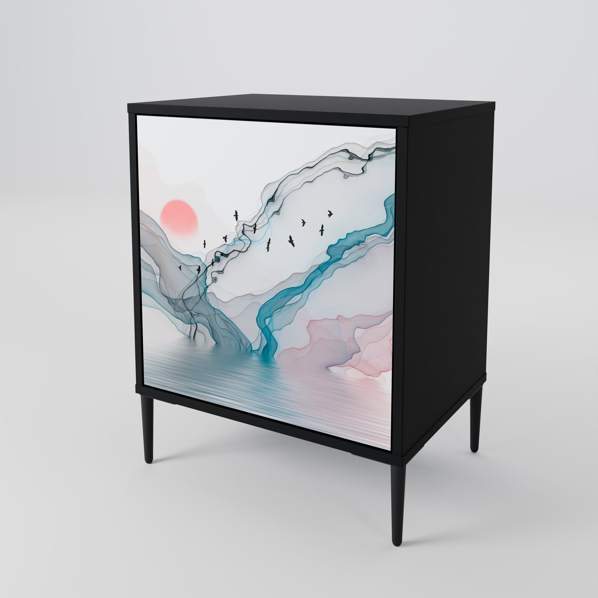Questo mobile compatto ma straordinariamente elegante colpisce per il suo design minimalista, che si adatta perfettamente sia agli interni moderni che a quelli classici. Il corpo nero enfatizza il carattere audace del mobile, mentre i frontali con una stampa esclusiva aggiungono un tocco artistico.