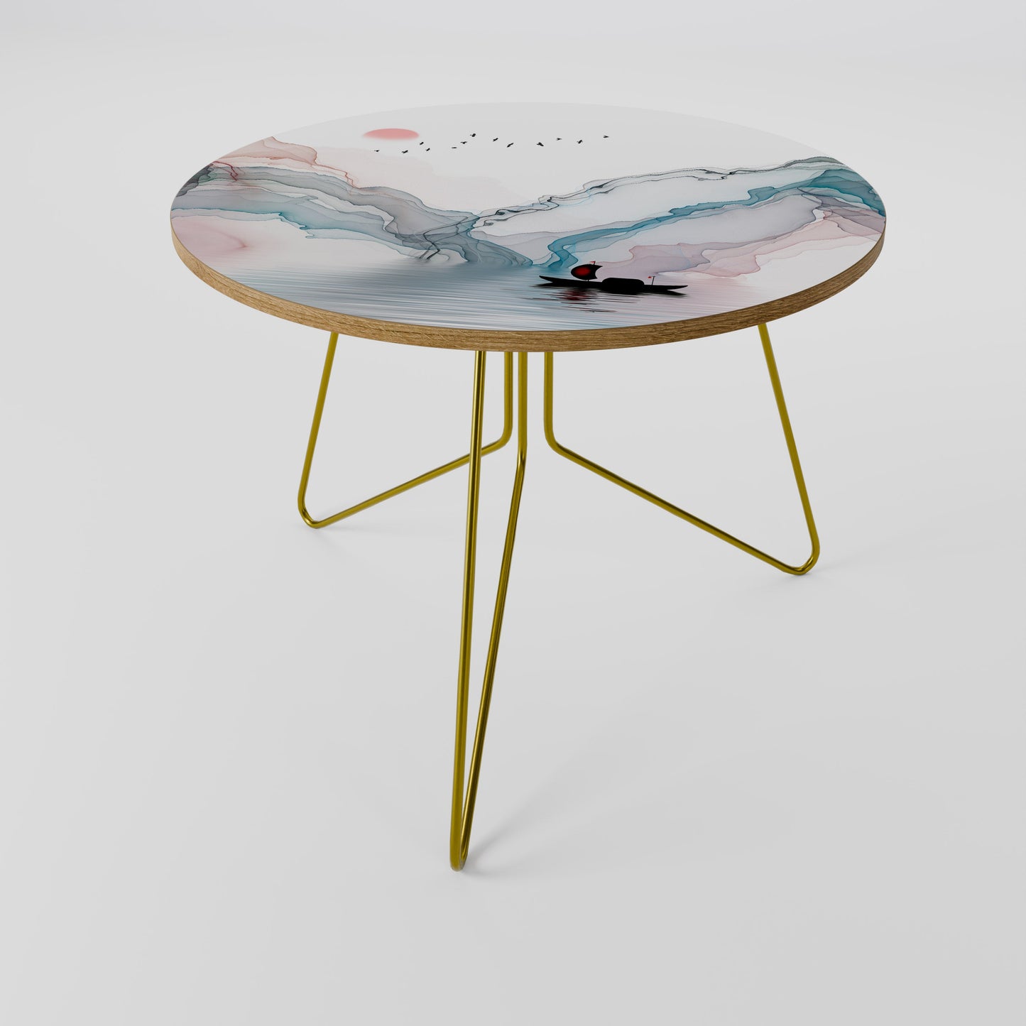 - Gambe con pinna dorata / Bordo del piano del tavolo effetto rovere