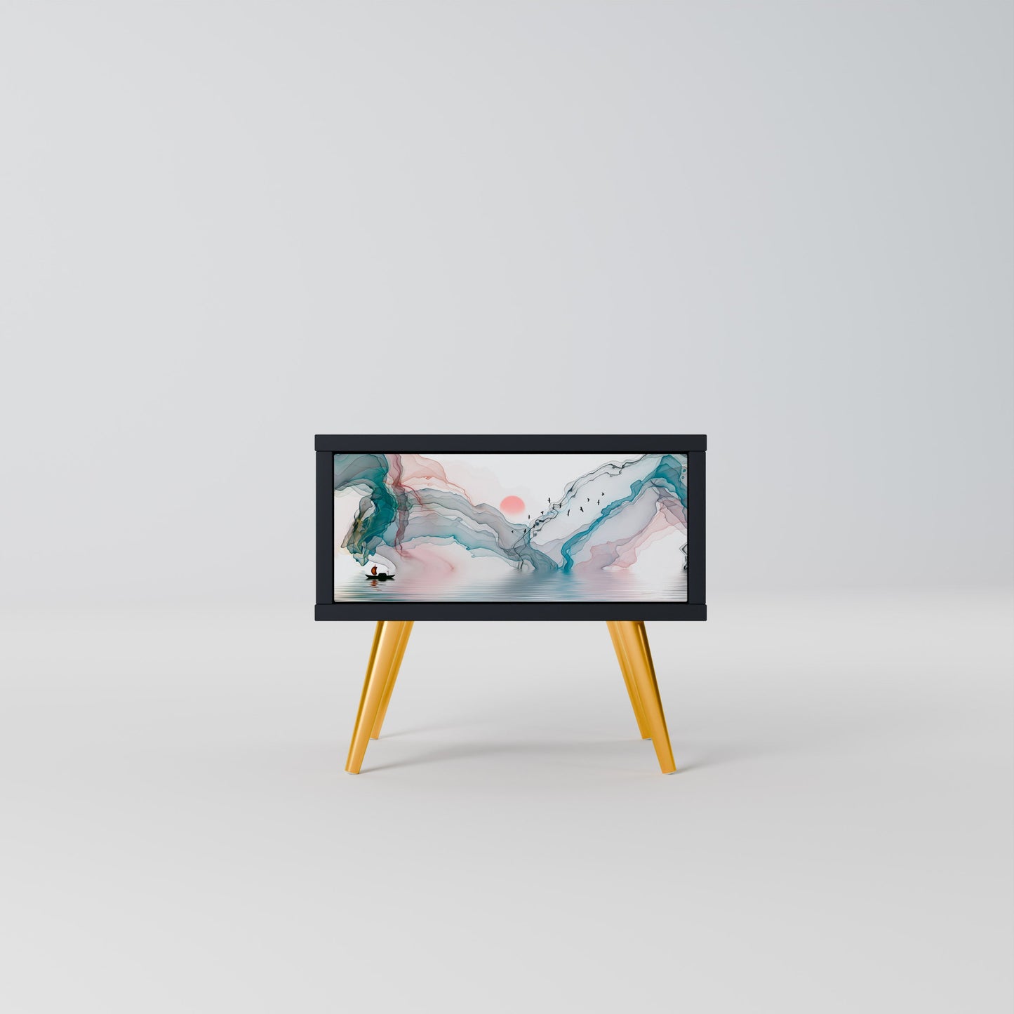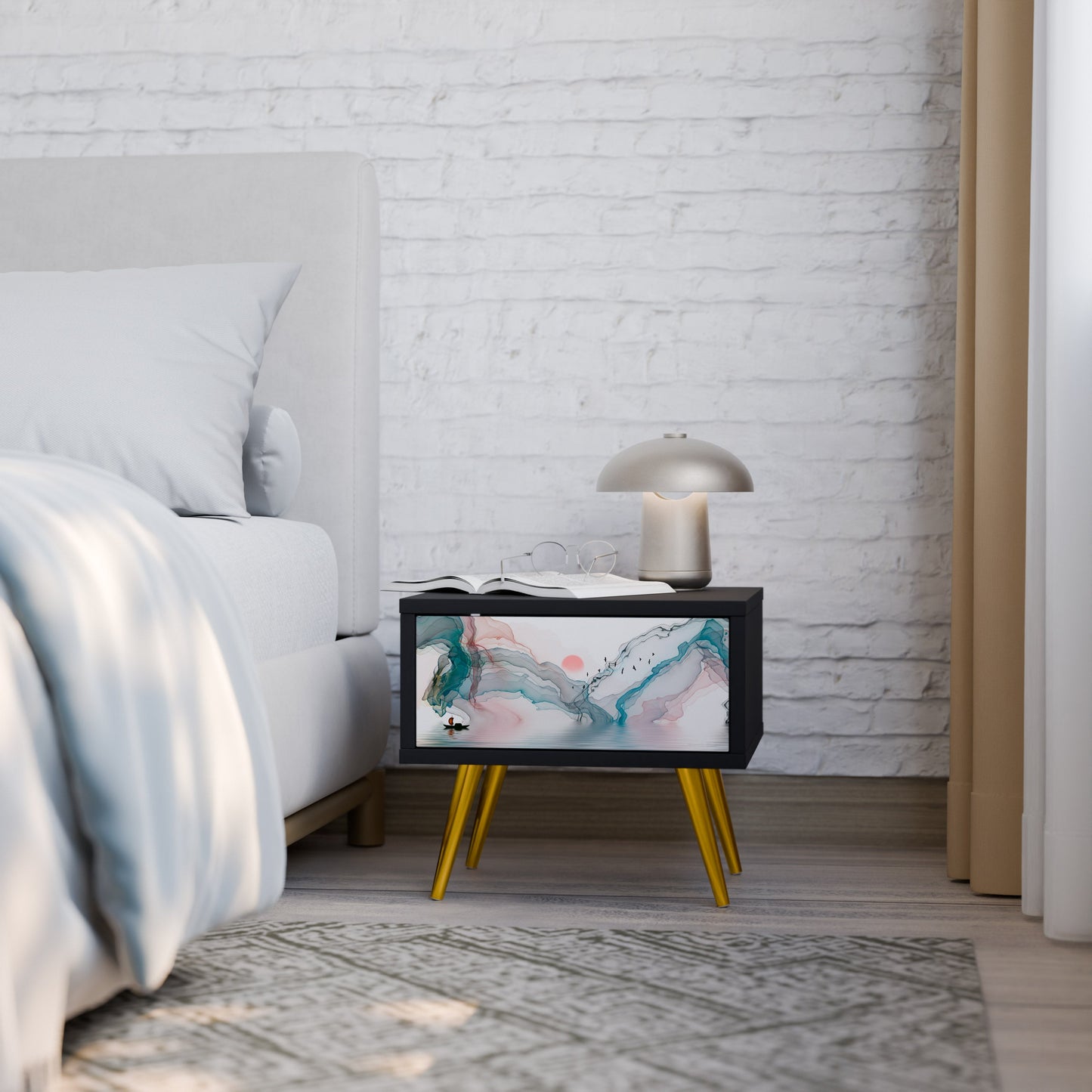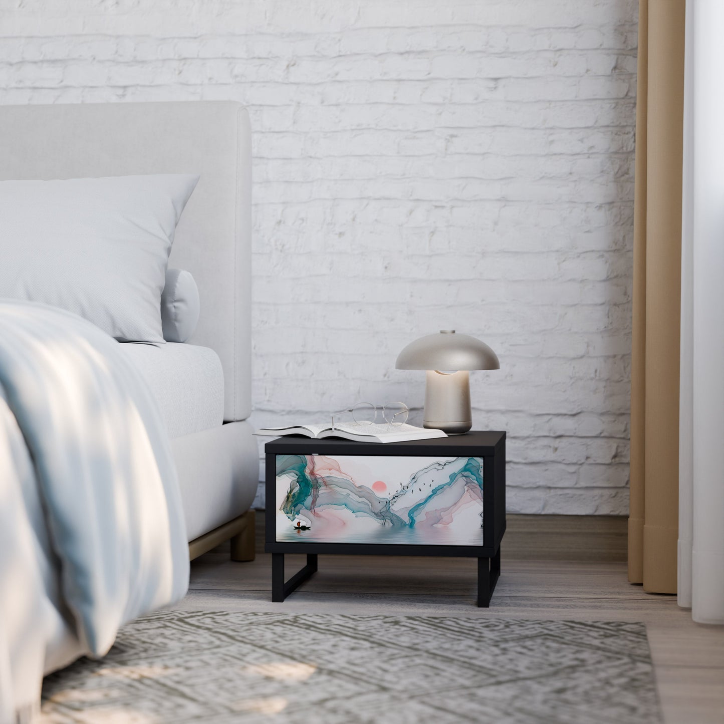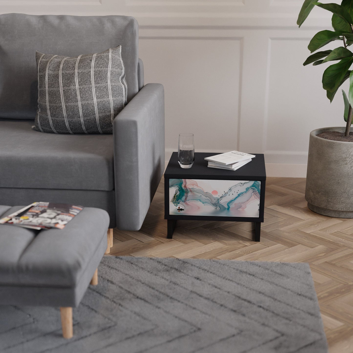 Scoprite raffinatezza e praticità in un design compatto con il nostro comodino con cassetto in un'elegante finitura nera. Questo mobile elegante e funzionale fonde stile contemporaneo e design minimalista, diventando un'aggiunta di grande impatto a qualsiasi camera da letto.
