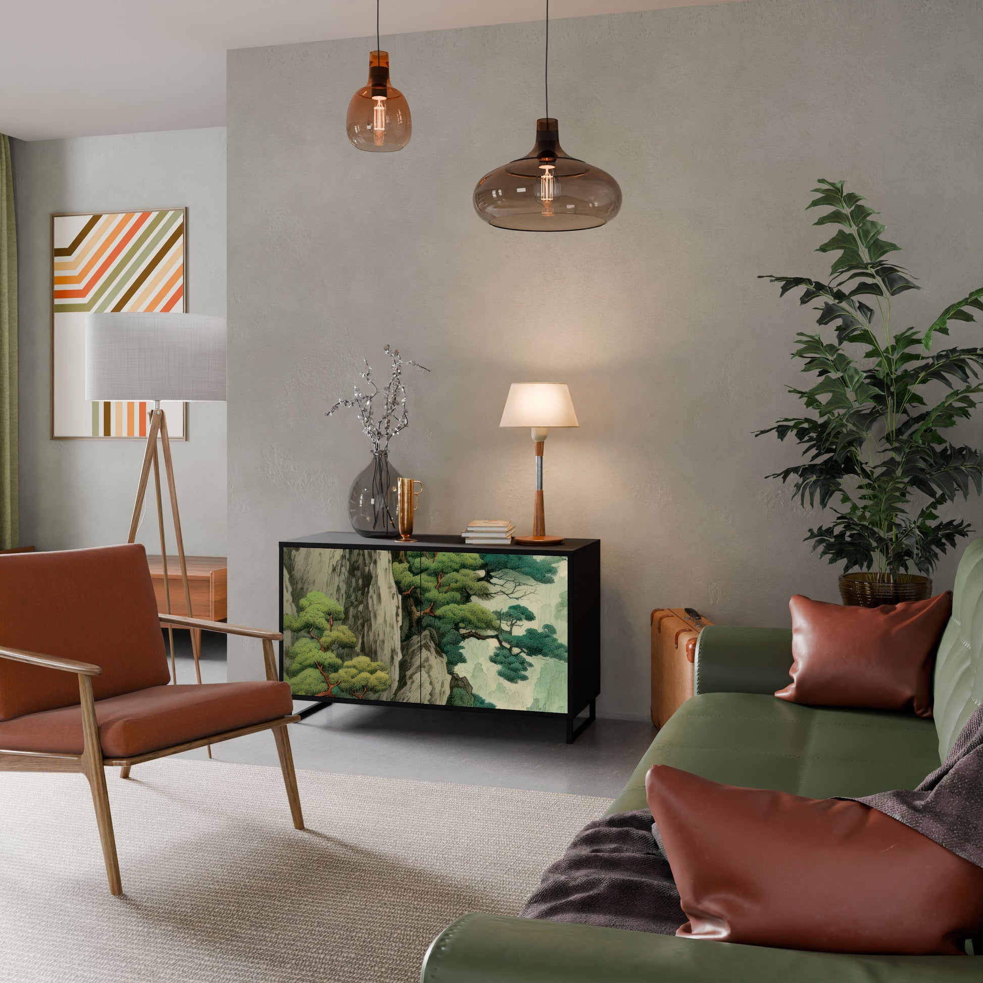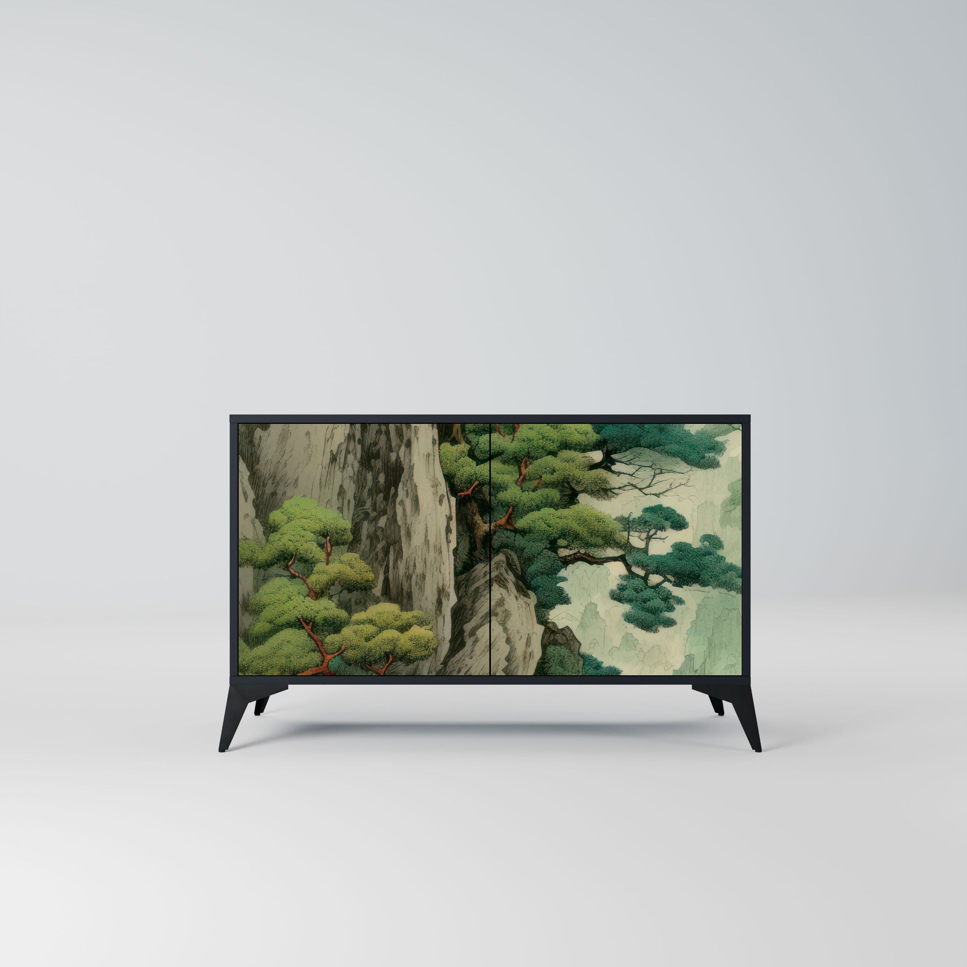 Eleganza e funzionalità in un unico mobile: la nostra credenza a 2 ante con corpo nero è la soluzione perfetta per gli amanti degli interni eleganti e moderni. Il corpo nero enfatizza il carattere audace del mobile, mentre i frontali con una stampa unica aggiungono un tocco artistico. Si adatta perfettamente al soggiorno, alla camera da letto o all'ufficio, completando sia gli arrangiamenti moderni che quelli industriali.