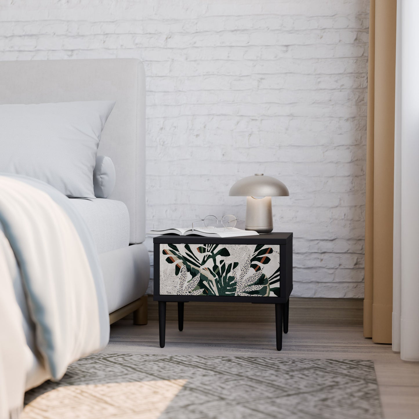 L'unità è progettata con cura per aiutarti a rimanere organizzato. L'ampio cassetto è ideale per riporre piccoli oggetti essenziali come cosmetici, caricabatterie o accessori, mentre l'ampia superficie superiore offre spazio per una lampada da comodino, un libro o un telefono, assicurandoti che tutto ciò di cui hai bisogno sia sempre a portata di mano.