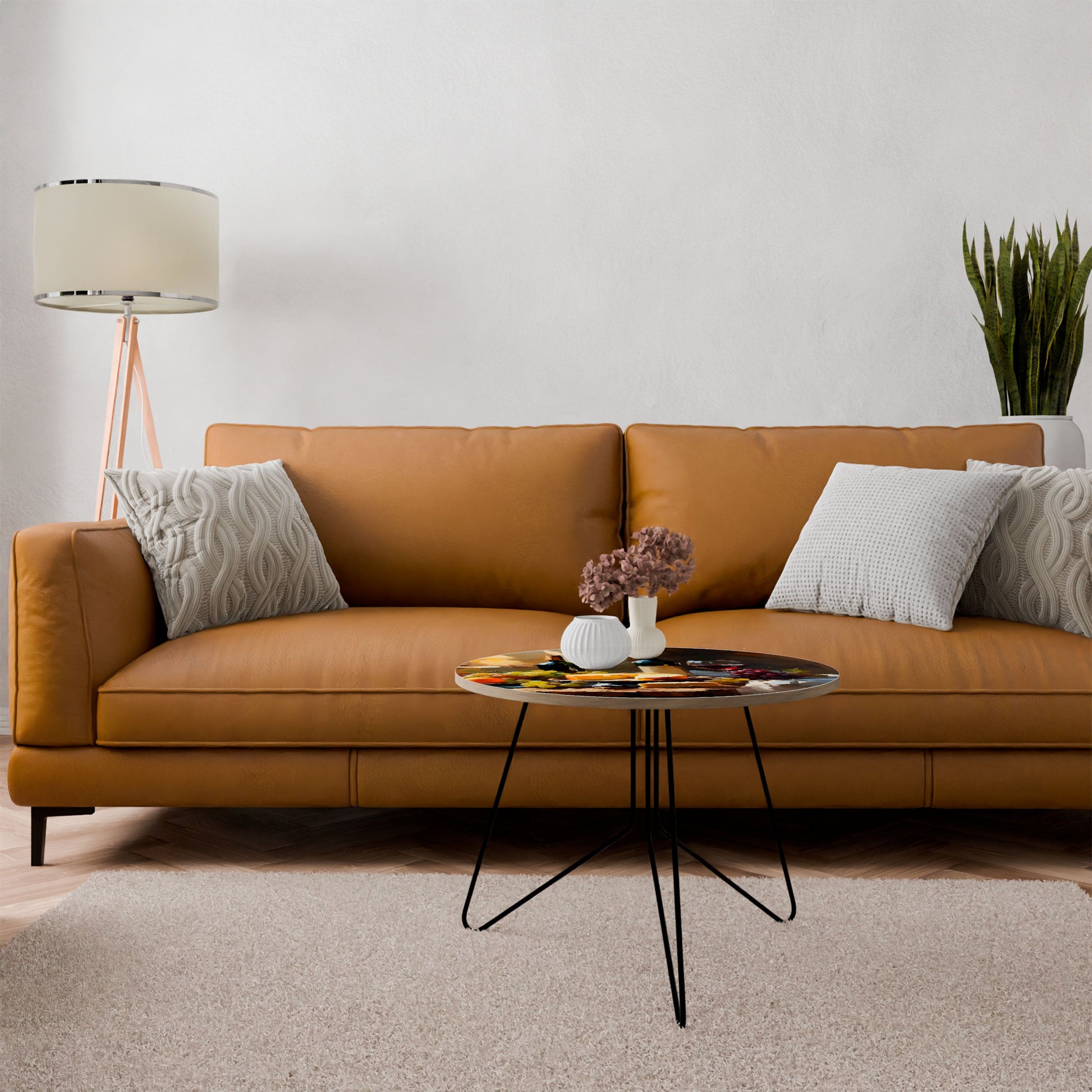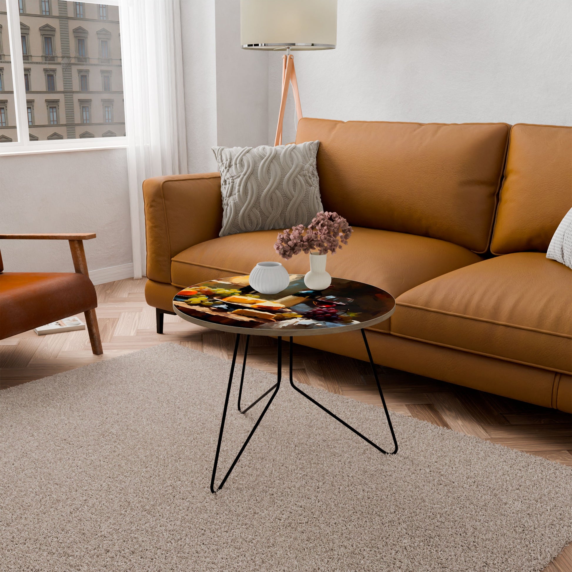 Il piano del tavolo presenta un motivo stampato di alta qualità, che aggiunge un tocco artistico distintivo al tuo spazio. Realizzato in resistente truciolato rivestito in laminato, garantisce un utilizzo duraturo e resistenza all'usura quotidiana.