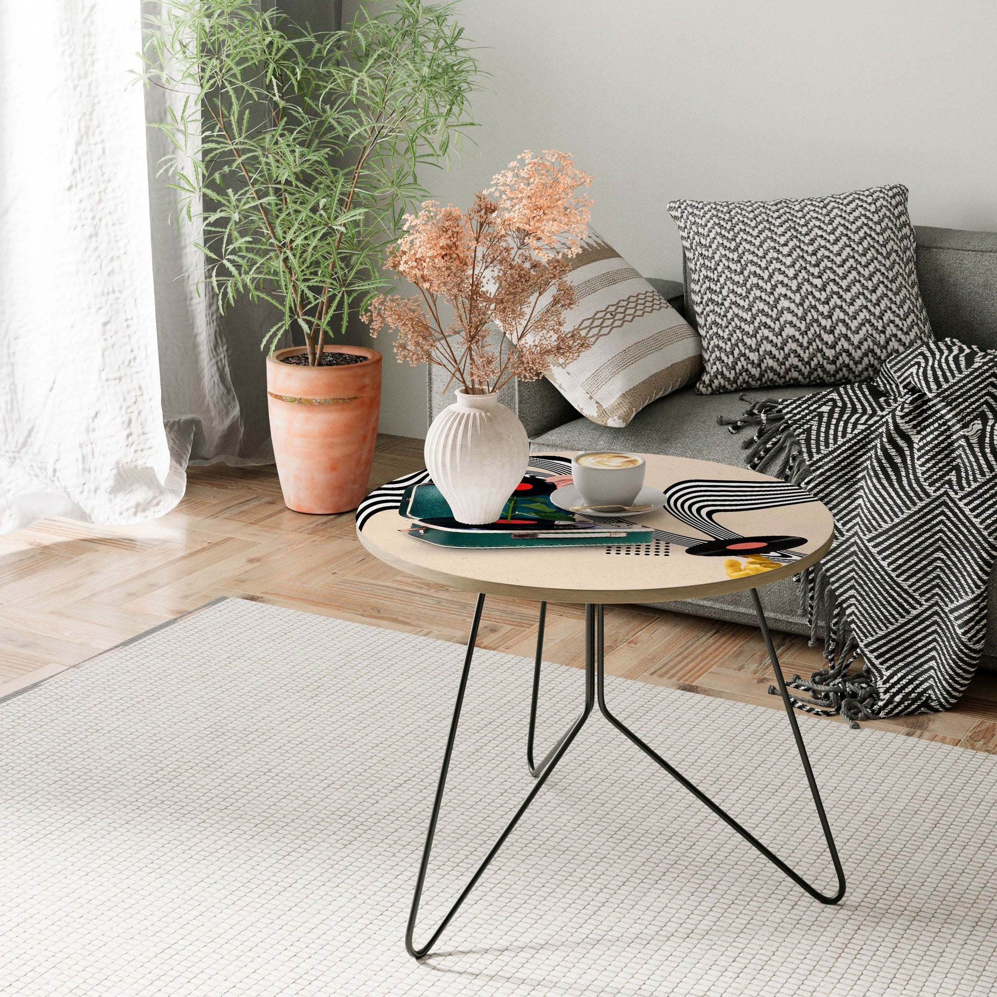 Il piano del tavolo presenta un motivo stampato di alta qualità, che aggiunge un tocco artistico distintivo al tuo spazio. Realizzato in resistente truciolato rivestito in laminato, garantisce un utilizzo duraturo e resistenza all'usura quotidiana.