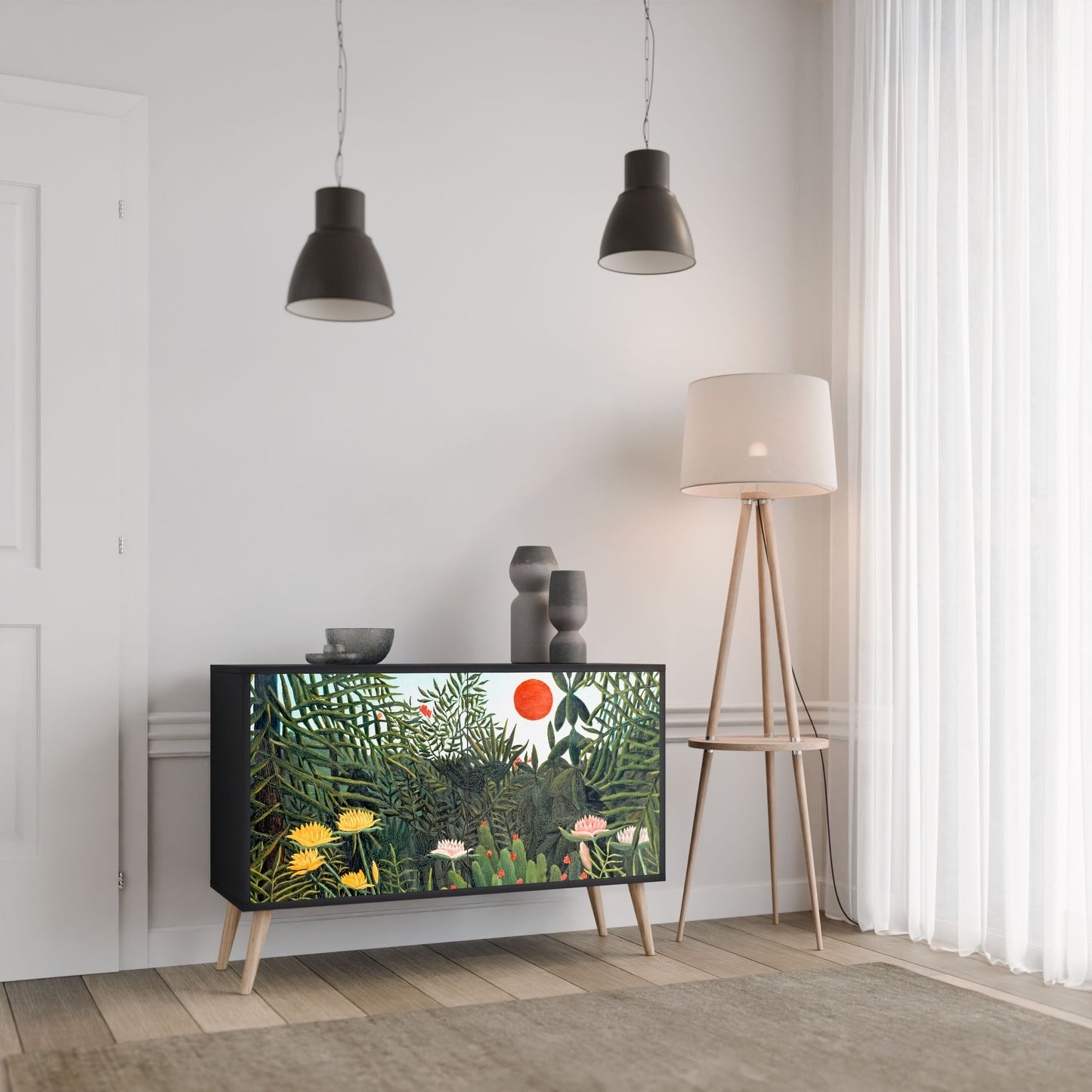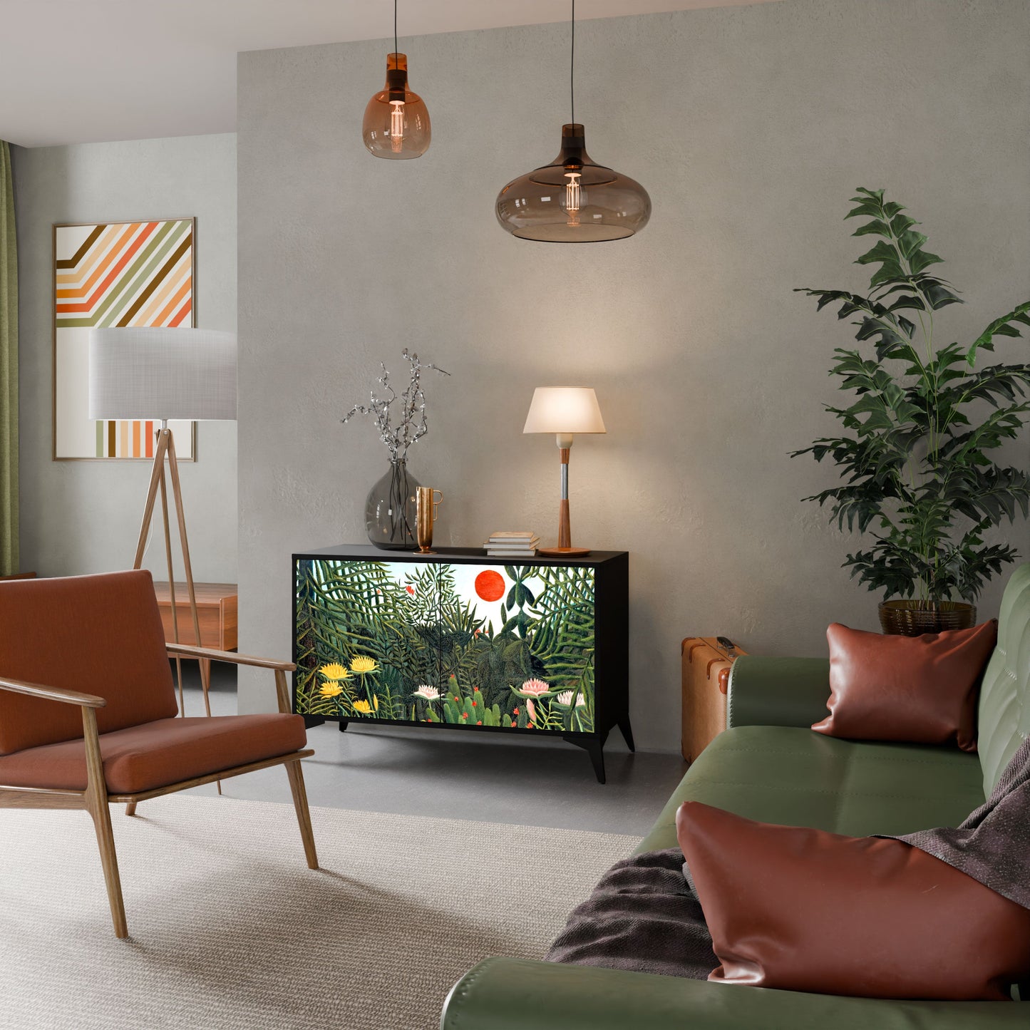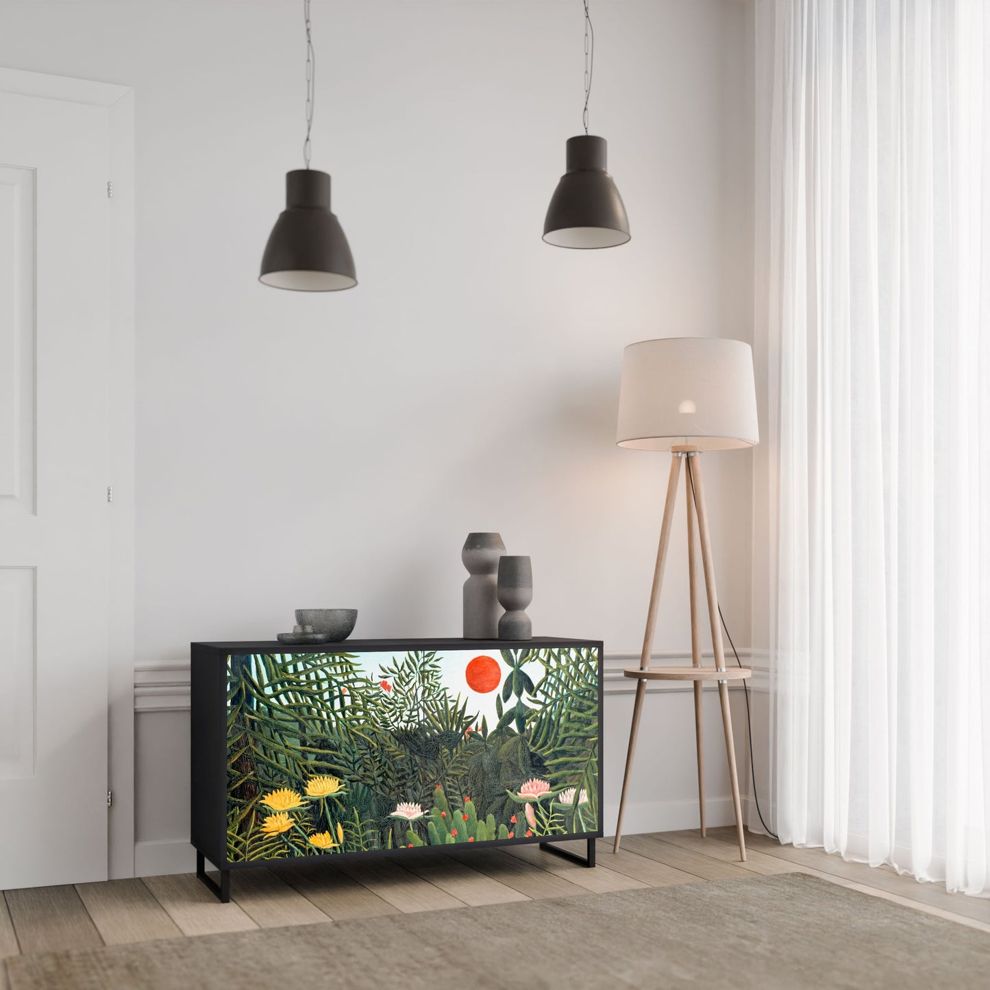 Credenza a 2 ante VIRGIN FOREST WITH SUNSET in finitura nera