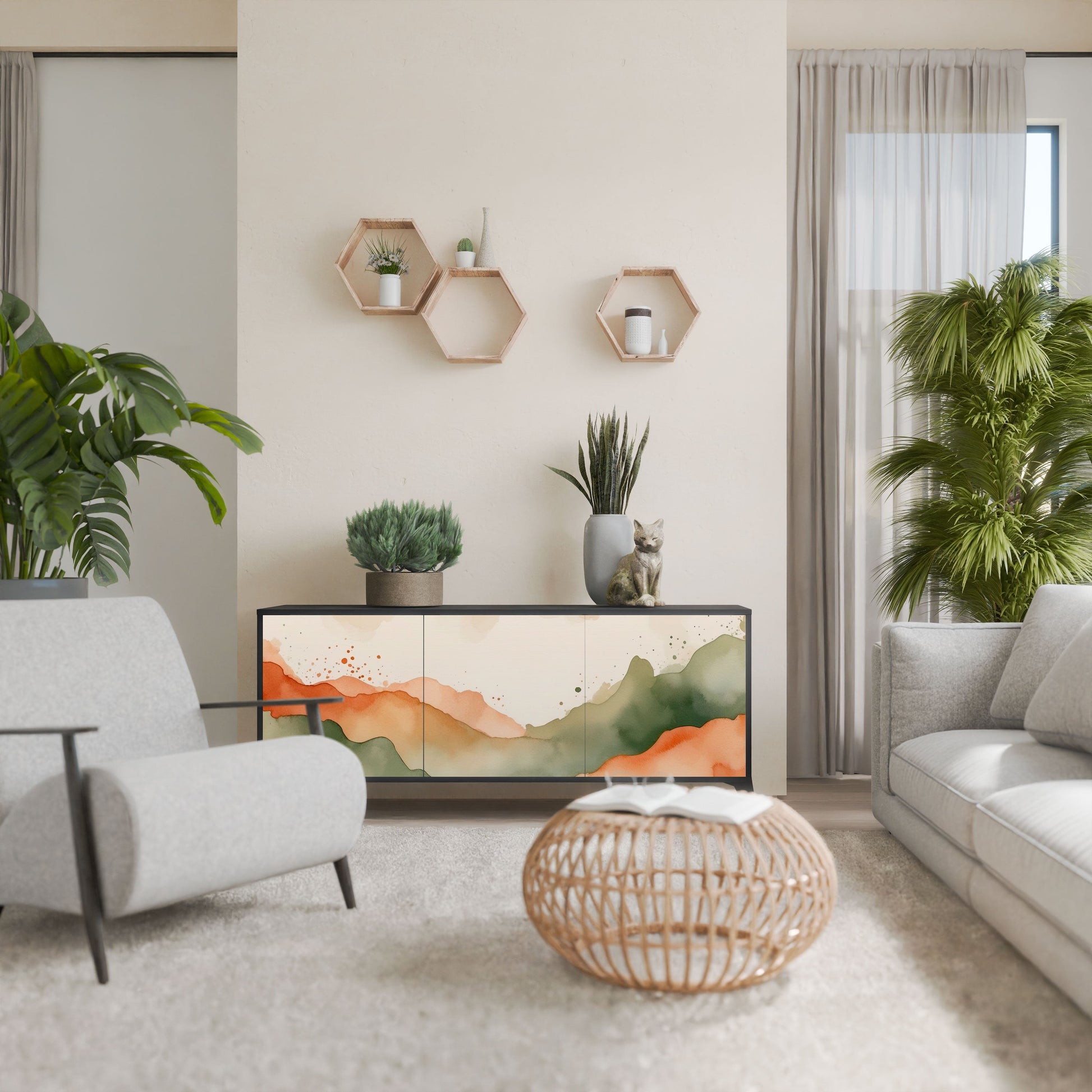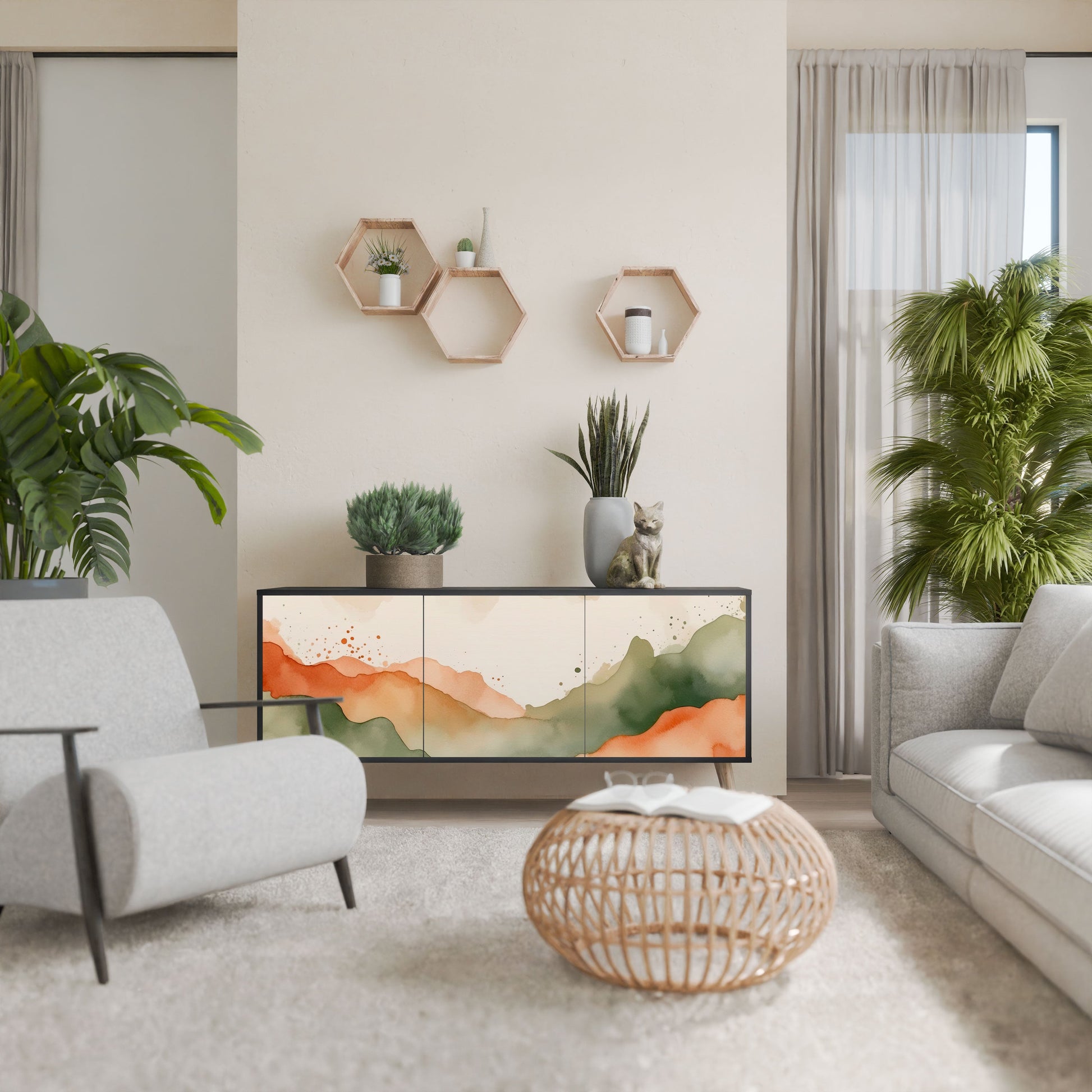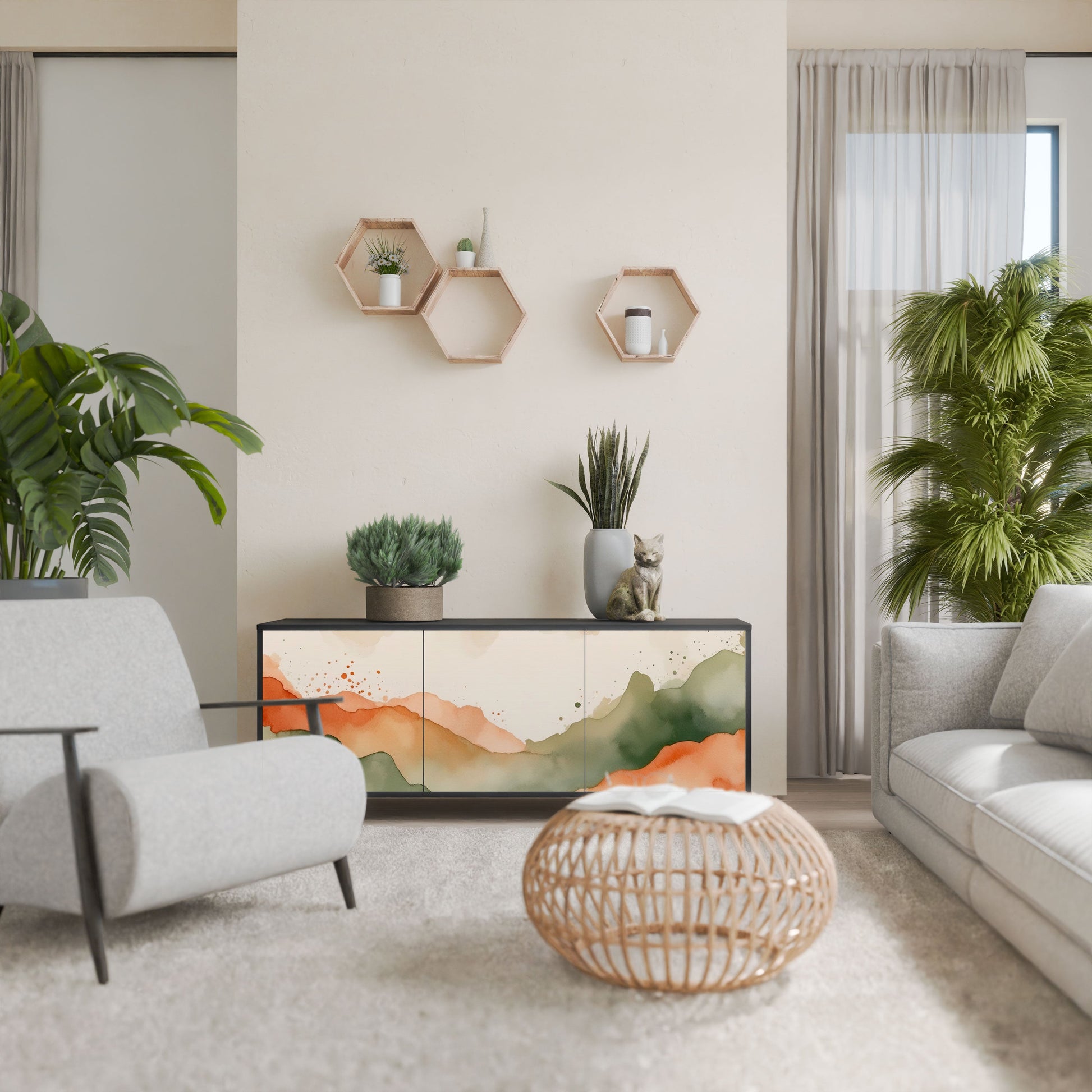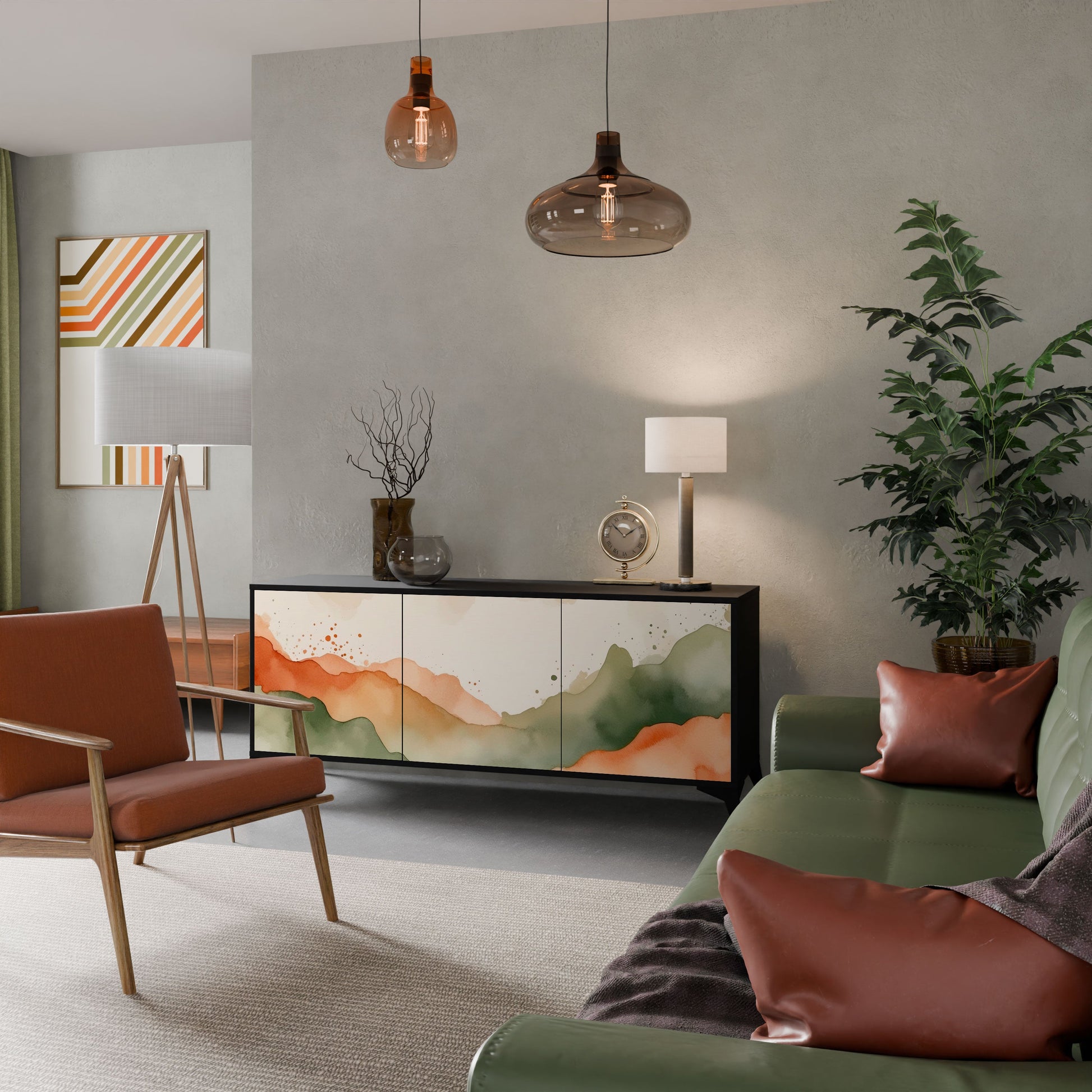 Credenza a 3 ante WATERCOLOUR PEAKS in finitura nera