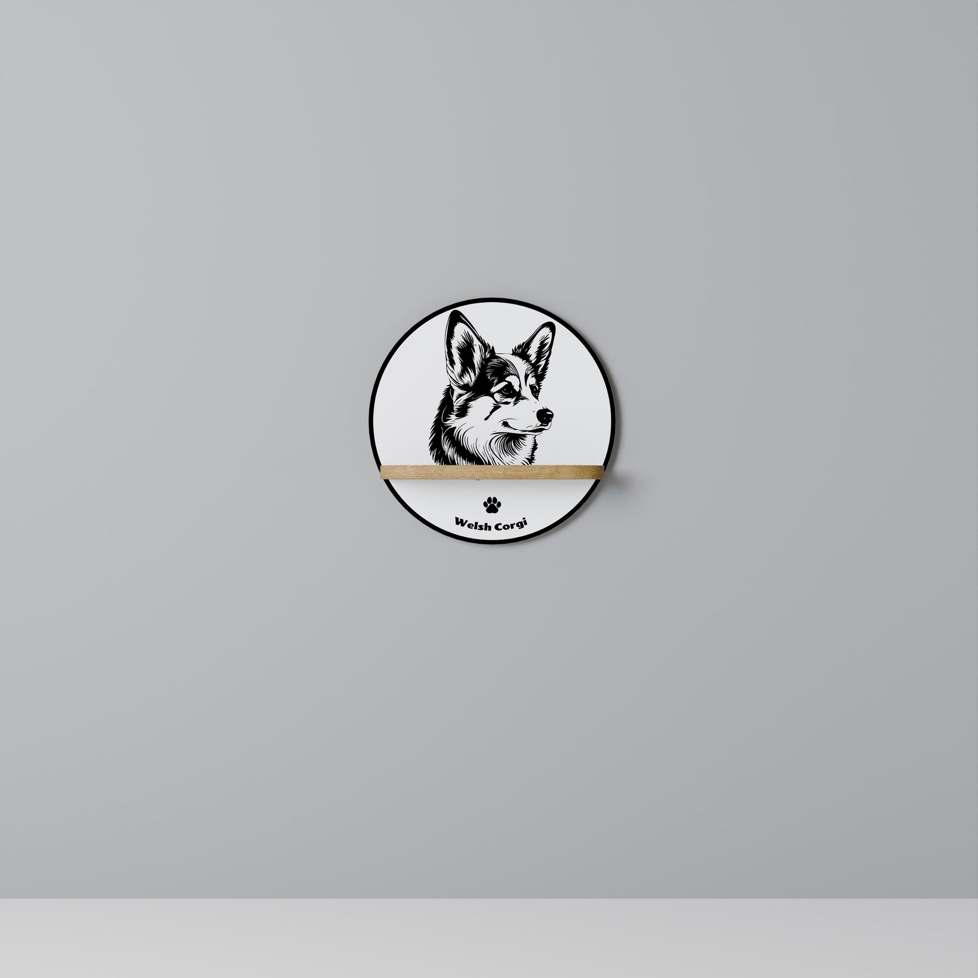 WELSH CORGI PEMBROKE Mensola rotonda per arte in effetto rovere