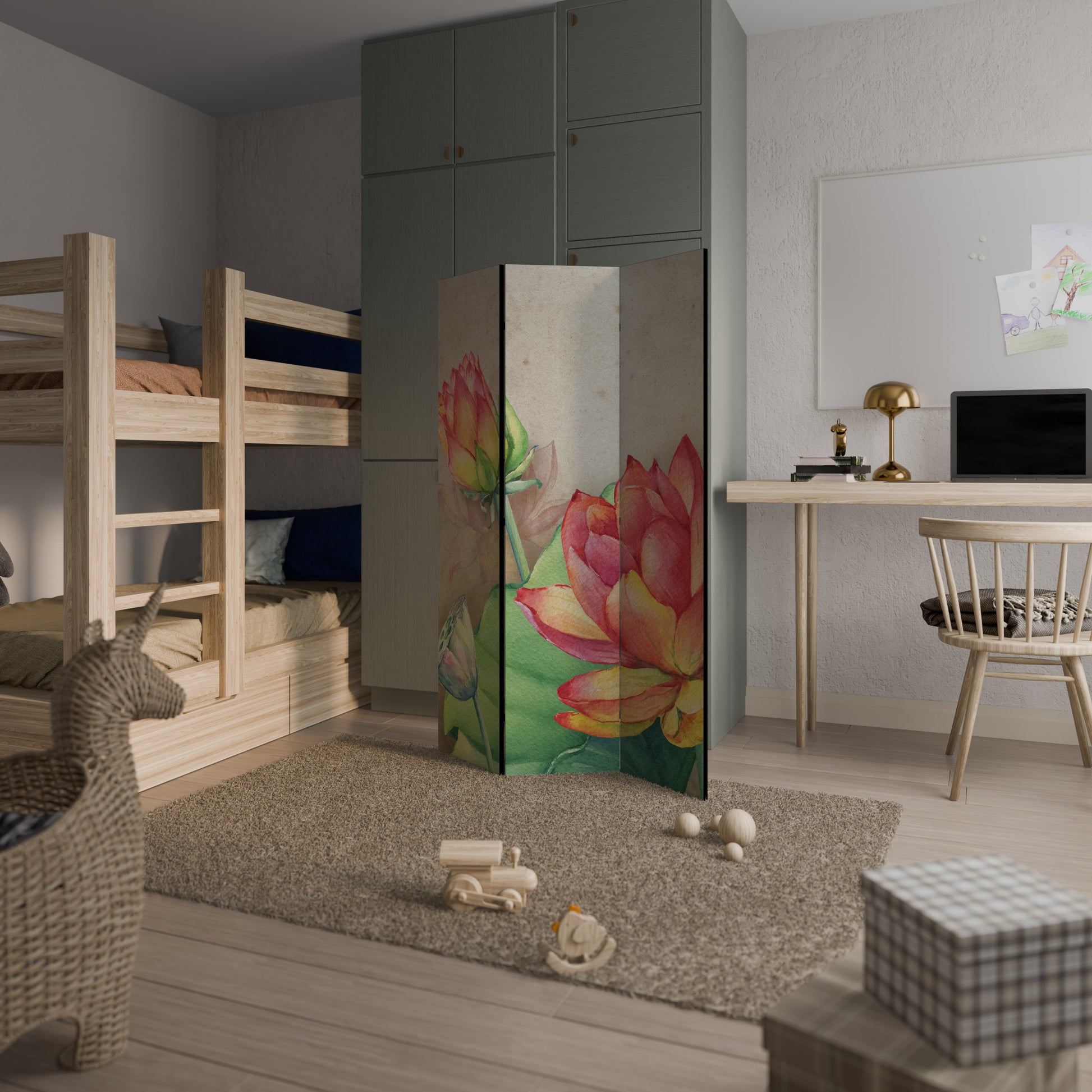 WHISPERING LOTUS BLOOMS Divisorio decorativo per ambienti a 3 pannelli