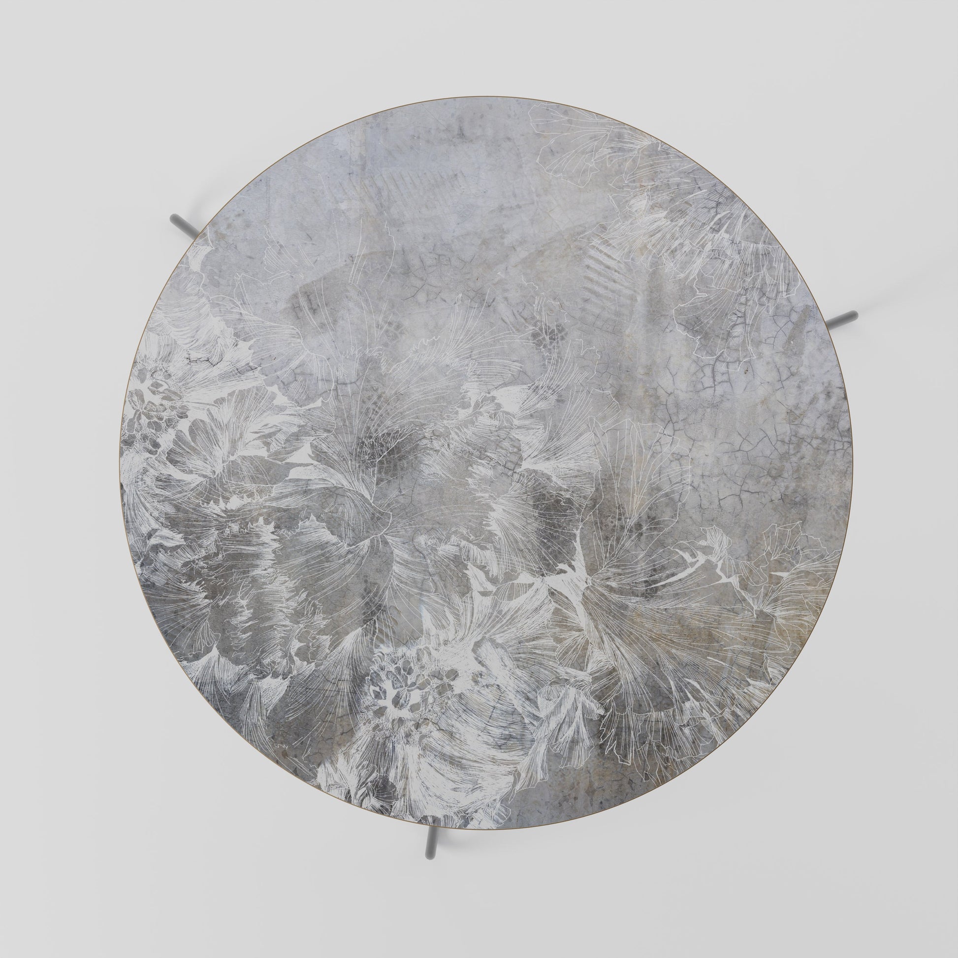 Il piano del tavolo presenta un motivo stampato di alta qualità, che aggiunge un tocco artistico distintivo al tuo spazio. Realizzato in resistente truciolato rivestito in laminato, garantisce un utilizzo duraturo e resistenza all'usura quotidiana.